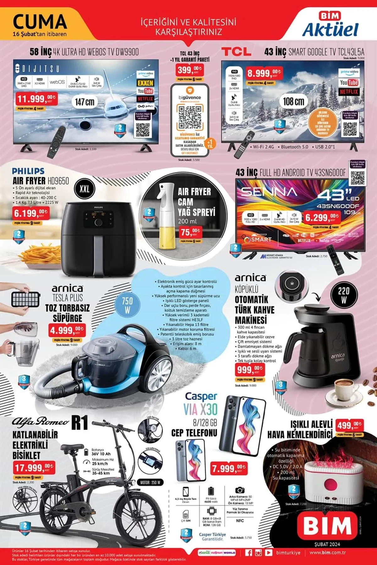 BİM aktüel indirimlerinden yararlanmak için 16 Şubat kataloğunu takip etmeyi unutmayın! Haftanın fırsatları, sizleri bekliyor. Elektronik ürünlerden ev gereçlerine kadar geniş bir ürün yelpazesiyle dolu olan BİM raflarında, ihtiyaçlarınızı uygun fiyatlarla karşılayabilirsiniz.