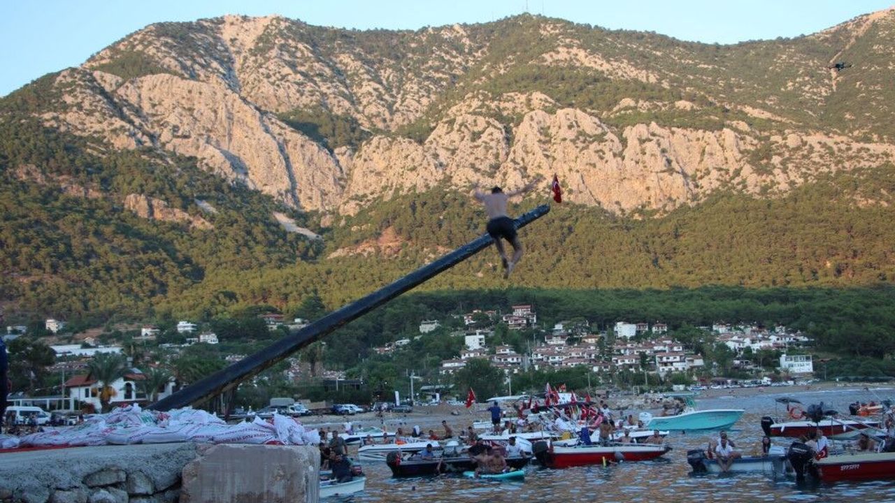 34. Karaöz Denizcilik ve Kabotaj Bayramı Etkinlikleri, kapsamında düzenlenen etkinliklerde yağlı direkten bayrağı alan kişiye verilecek 10 bin TL ödül için yarışmacılar kıran kırana mücadele etti.
