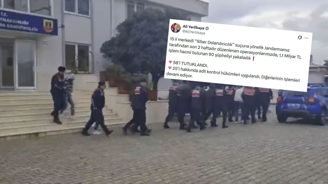 İçişleri Bakanı Ali Yerlikaya, jandarma tarafından son iki haftadır yürütülen siber operasyonların sonuçlarını kamuoyuyla paylaştı. Türkiye genelinde 15 il merkezli gerçekleştirilen çalışmalarda, hesaplarında toplam 1,1 milyar TL işlem hacmi bulunan 90 şüpheli yakalandı. Adli makamlara sevk edilen şüphelilerden 58’i tutuklanırken, 25’i hakkında adli kontrol kararı verildi. Diğer şüphelilerle ilgili işlemlerin sürdüğü bildirildi.