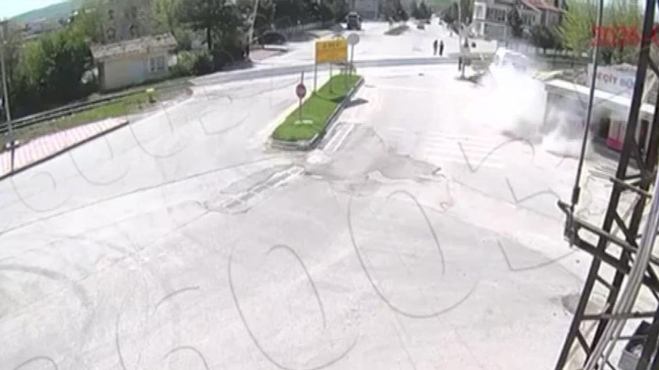 Edinilen bilgiye göre, Suluova ilçe merkezinde servis minibüsü, hemzemin geçide yakın kavşakta kontrolden çıkarak büfenin önündeki kaldırıma çarptı. Sonrasında önüne kattığı durağı yere serdi. Hemzemin geçide birkaç metre kala tekeri koparak durabilen minibüsün sürücüsü hafif şekilde yaralandı.