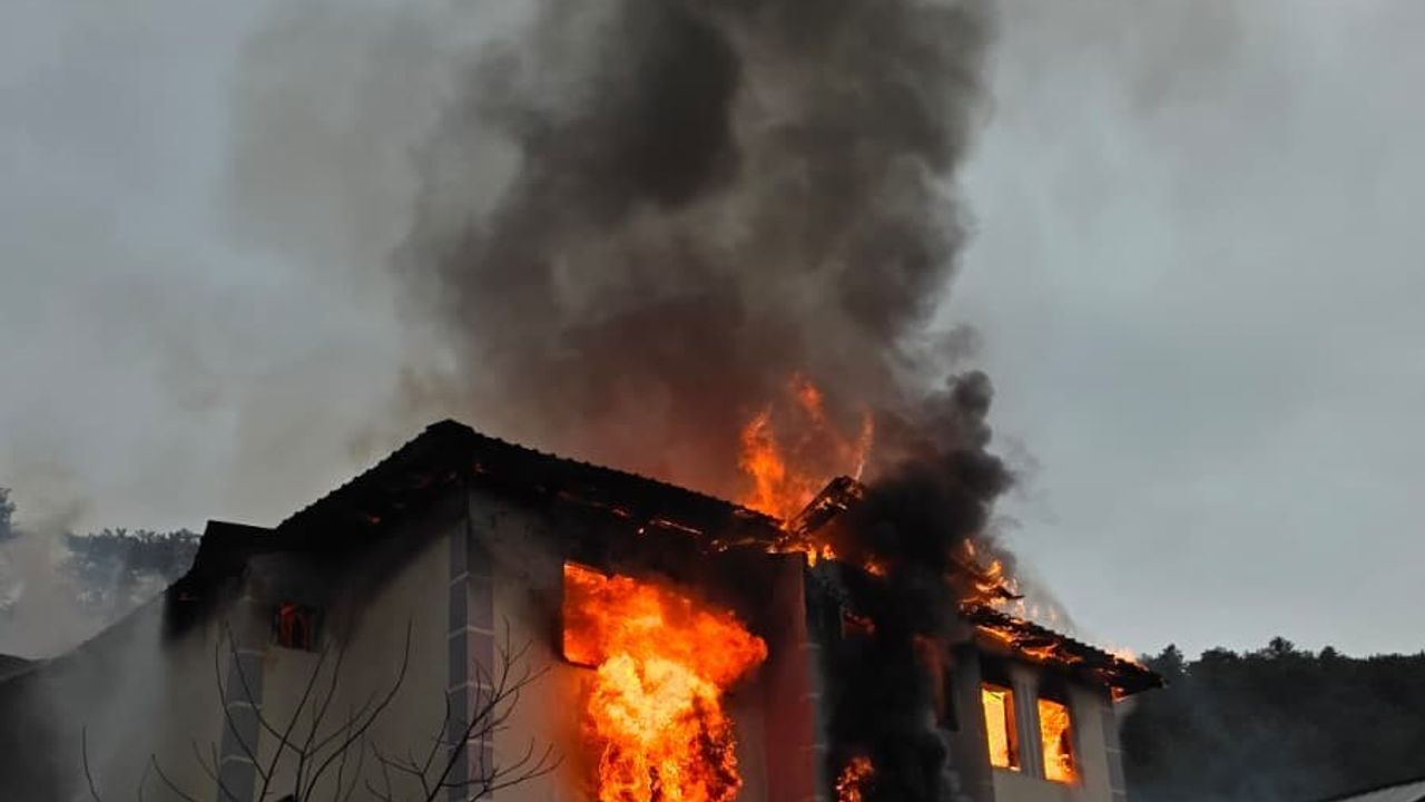 Hızır İlyas YILDIRIM/ MUDURNU(Bolu), (DHA)- BOLU’nun Mudurnu ilçesinde, 2 katlı ev, alev alev yandı. İtfaiyecilerin söndürdüğü yangın nedeniyle evde hasar oluştu.Beyderesi köyü Alanbaşı Mahallesi’nde, saat 17.00 sıralarında, Ziyafettin Cazoğlu'na ait 2 katlı betonarme evde bilinmeyen nedenle yangın çıktı. Evde yaşayanlar, yangını fark edip dışarı çıktı. İhbar üzerine bölgeye itfaiye ekipleri sevk edildi. İtfaiyecilerin müdahalesiyle yangın kontrol altına alınıp söndürüldü. Yaralananın olmadığı ancak alev alev yanan evde hasar oluştu. Yangının çıkış nedeninin belirlenmesi için inceleme başlatıldı. (DHA)FOTOĞRAFLI