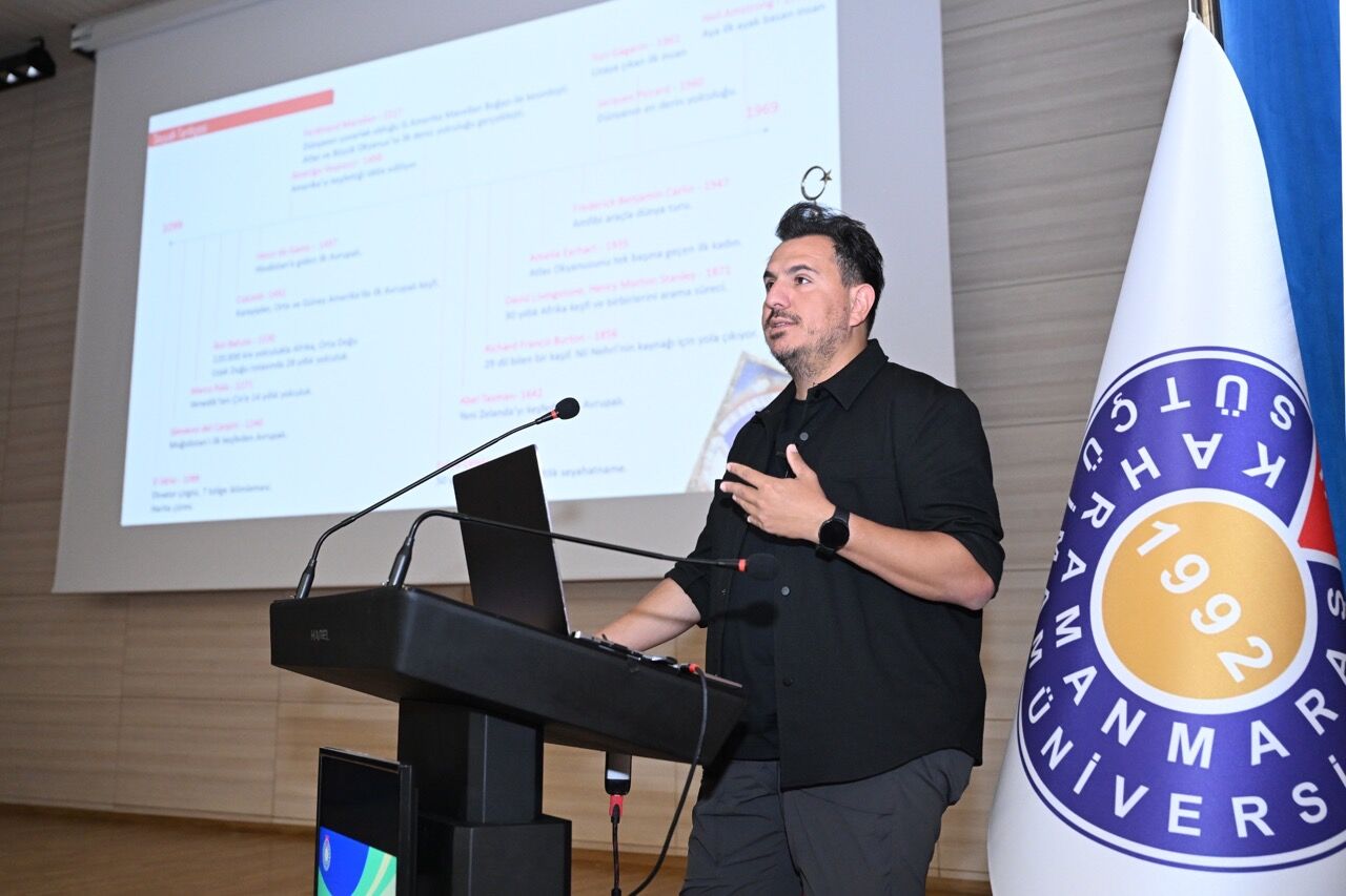 Bozaslan, sunumunun devamında dünya keşif tarihine dair çarpıcı örnekler sundu. Kristof Kolomb’un Amerika seferi, 1871 Tanzanya keşfi ve 1911’deki Güney Kutbu yolculuğuna değinen Bozaslan, insanlığın bilinmeyene duyduğu merakın asırlardır devam ettiğini ifade etti.
