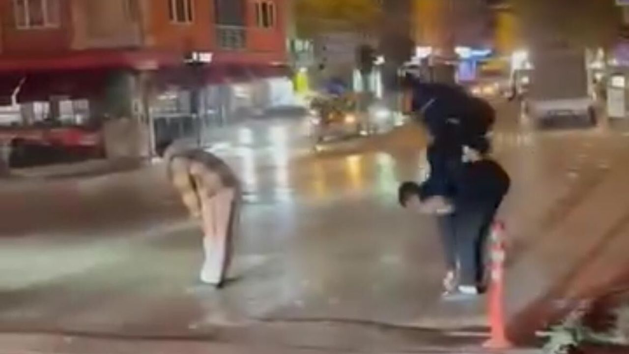 Arkadaşlardan biri dengesini kaybedince oyun sona erdi. O anlar, cadde üzerinde bulunan bir vatandaş tarafından cep telefonu kamerasıyla kaydedildi ve sosyal medyada paylaşılabilecek türden eğlenceli görüntülere dönüştü.
