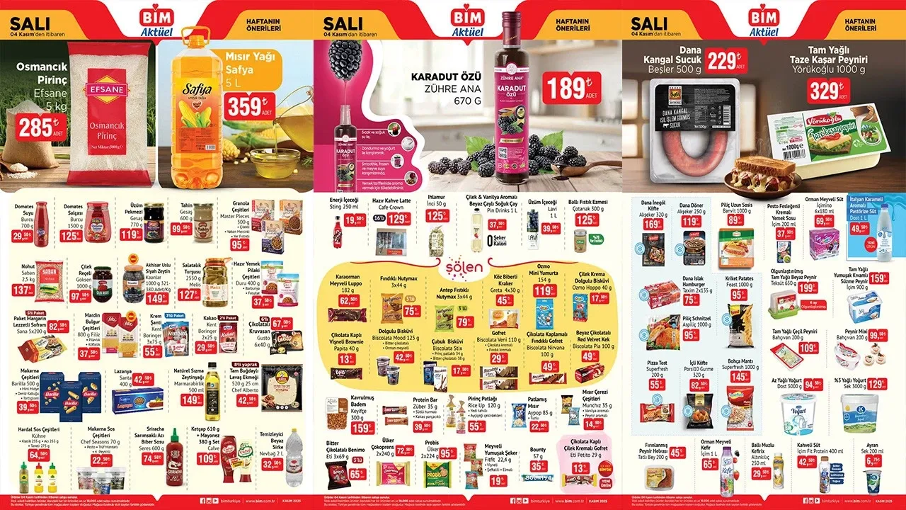 BİM’in 4 Kasım aktüel kataloğu, özellikle gıda ve içecek ürünlerini uygun fiyatlarla sunarak hafta başında alışveriş yapmak isteyenleri mağazalara çekiyor.