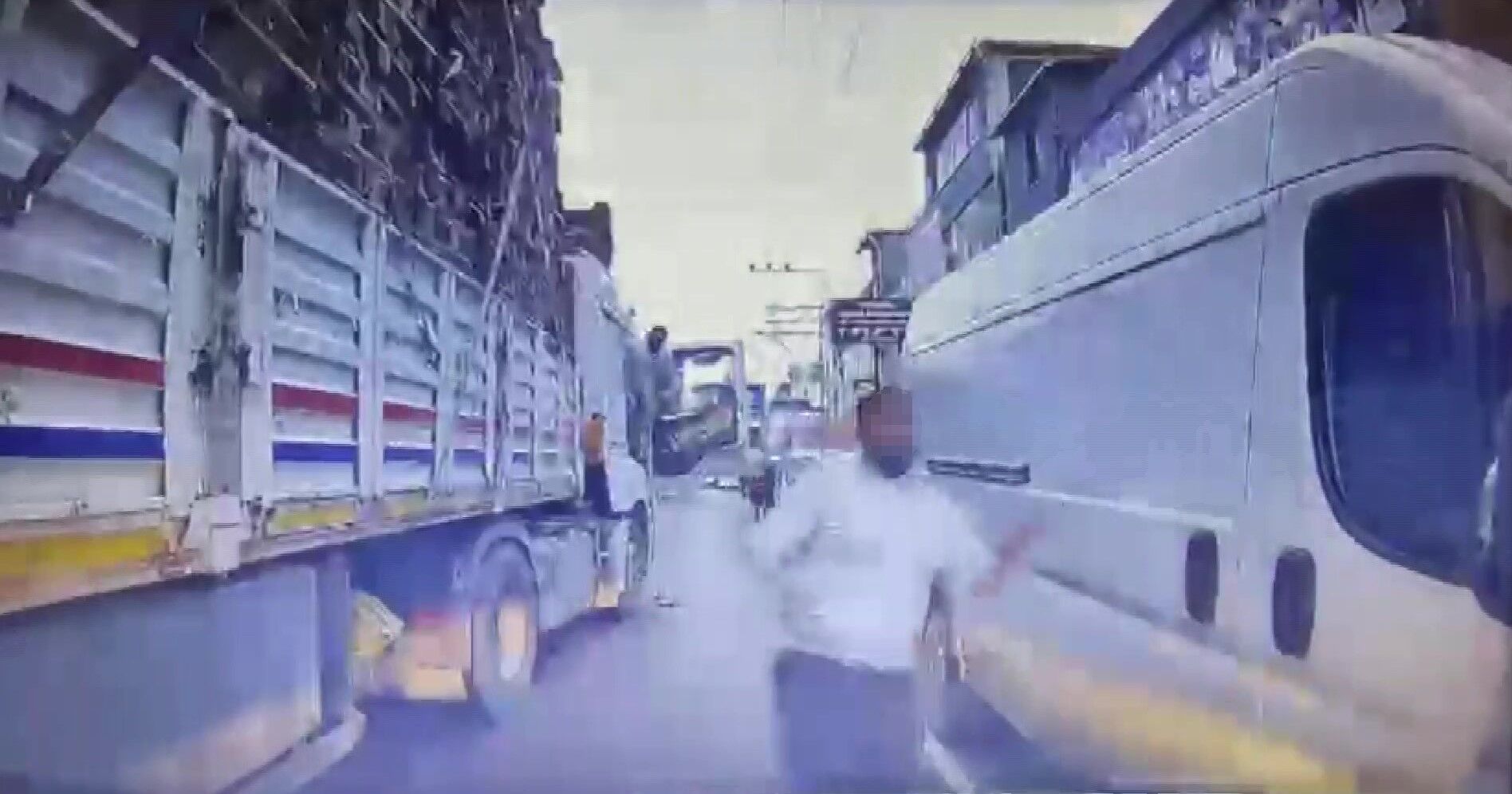 Yaşanan saldırı anı, otomobilde bulunan araç kamerası tarafından saniye saniye kaydedildi. Görüntülerde tırın yolu kestiği, ardından saldırganın araçtan inerek bıçakla otomobile yöneldiği anlar net şekilde görüldü.