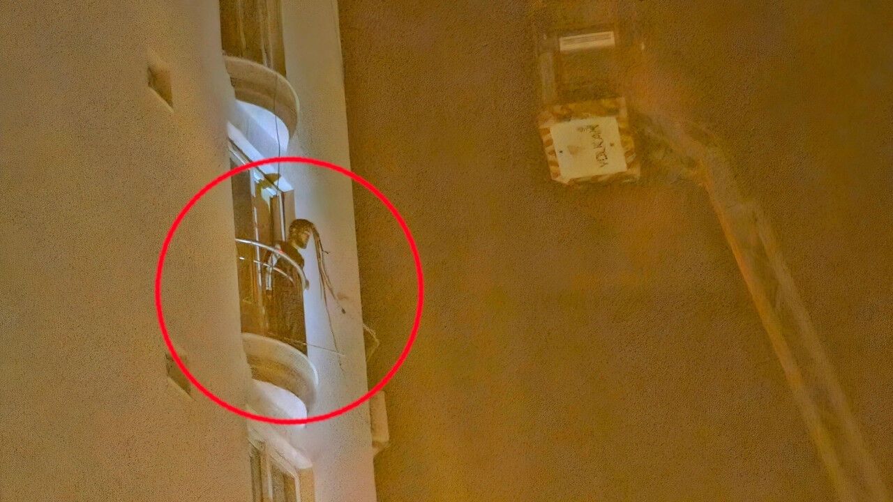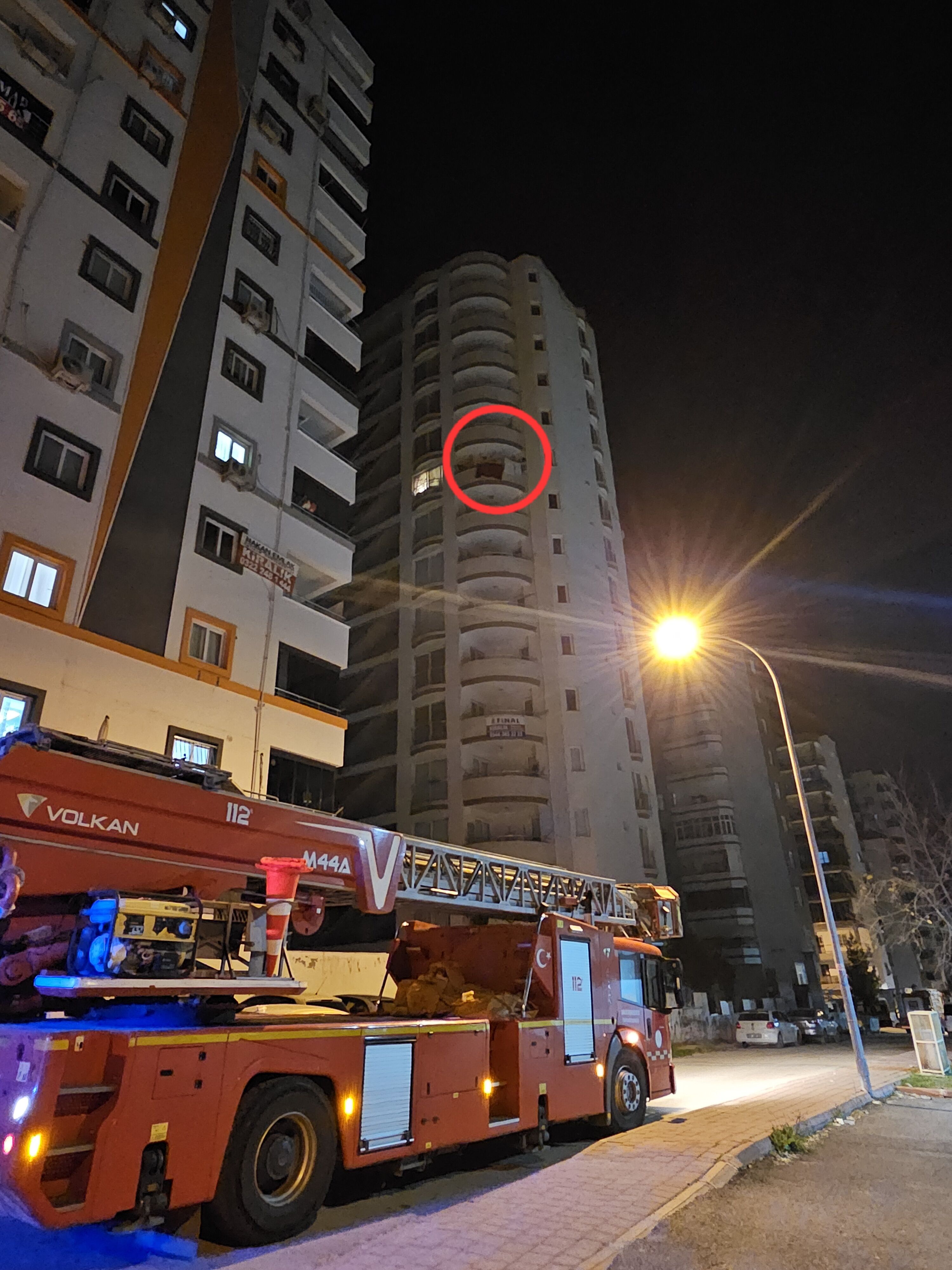 İtfaiye ekiplerinin merdivenli araçla balkona yaklaşma girişimi de E.A.’nın tepkisi üzerine gerçekleştirilemedi.