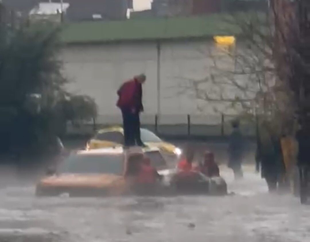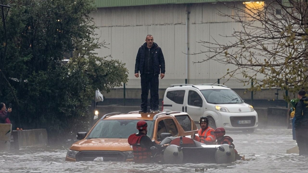 Çukurova ilçesi Yurt Mahallesi’nde suyla kaplanan yolda bir otomobil mahsur kaldı. Araçta bulunan iki kişi, yükselen su seviyesinden korunmak için otomobilin üzerine çıktı.