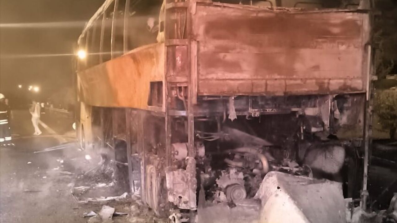 İtfaiyenin müdahalesiyle söndürülen yangın sonucu otobüs kullanılamaz hale geldi.