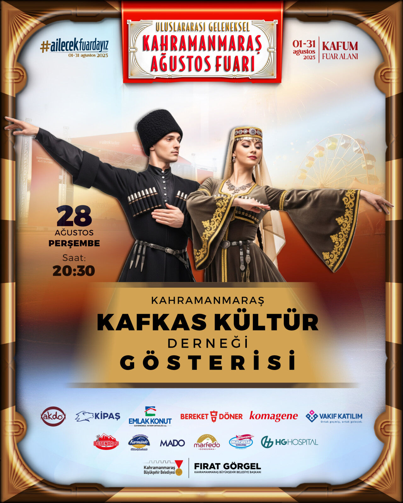 Kahramanmaraş Büyükşehir Belediyesi tarafından düzenlenen Geleneksel Ağustos Fuarı, 28 Ağustos Perşembe günü sahne alacak Kafkas dans gösterisiyle kültürseverlere unutulmaz anlar yaşatacak.