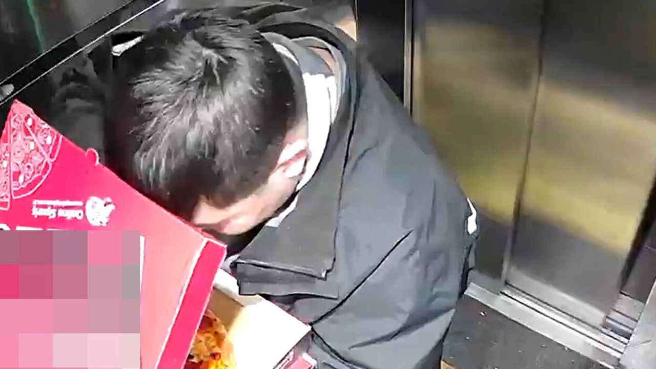 Vatandaş kamera görüntülerinde pizzayı getiren kuryenin üzerindeki malzemeleri yediğini ve asansöre tuvaletini yaptığını gördü. Görüntülerin sosyal medyaya düşmesi üzerine firma sahibi kuryeye önce asansörü temizletti ardından polis ekipleri kuryeyi ’genel ahlaka aykırı hareket etmek’ suçlaması ile gözaltına aldı.