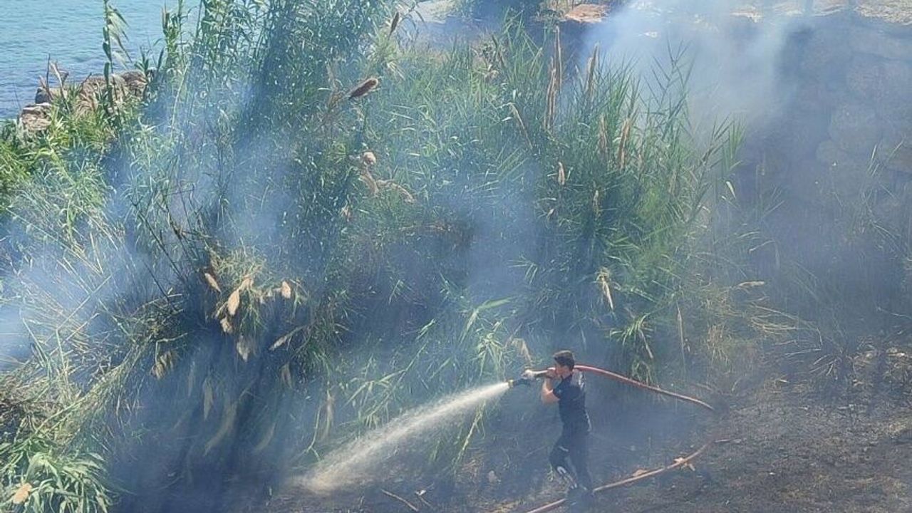 Yangın, dün öğle saatlerinde Azak Pansiyon’a yakın sahil bölgesinde başladı. Bölgeden yükselen dumanları fark eden vatandaşların ihbarı üzerine bölgeye çok sayıda itfaiye ekibi sevk edildi. Kısa sürede olay yerine ulaşan ekipler, çalılıklar arasında yayılan yangına müdahale etti.