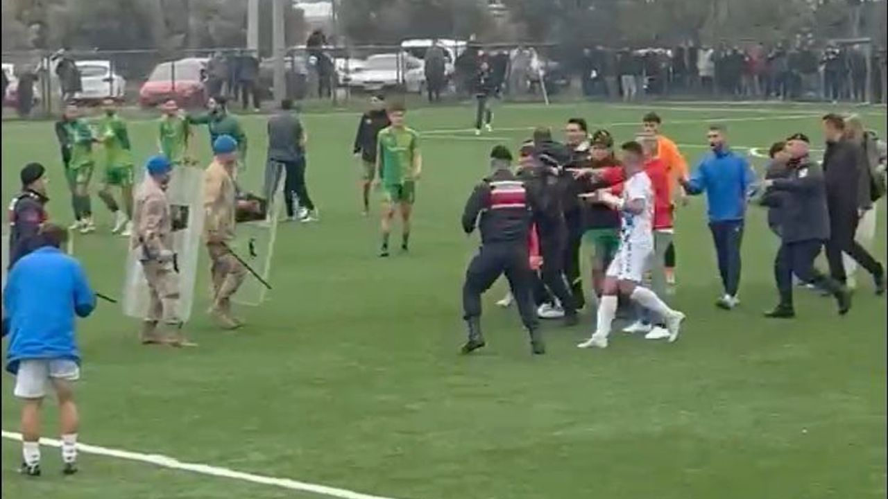 Olayı fark eden jandarma ekipleri, sahaya girerek kavgayı güçlükle kontrol altına aldı. Tribündeki taraftarlar ise yaşananları cep telefonlarıyla kaydetti. Olayla ilgili soruşturmanın başlatıldığı öğrenildi.
