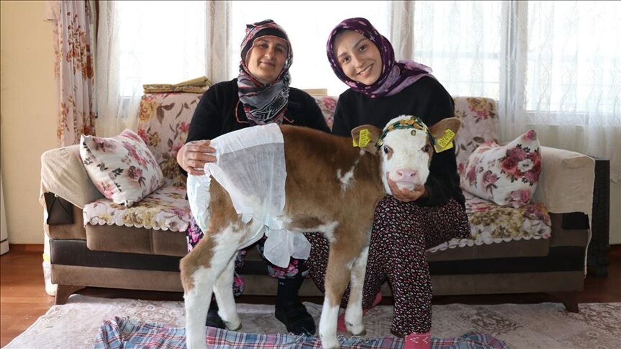 61 yaşındaki Zeynep Aksoy ise "Nisan"ı evin bir ferdi gibi görmeye başladıklarını belirterek, "Normalde iki kişiyiz anneli, kızlı yaşıyoruz ama şimdi Nisan ailemizin üçüncü üyesi oldu. O da yavrumuz, danamızla çok ilgileniyoruz, onu çok seviyoruz. Emziriyoruz, yediriyoruz, içiriyoruz. Yatağımıza alıp, yatırıyoruz, bezliyoruz." diye konuştu.
