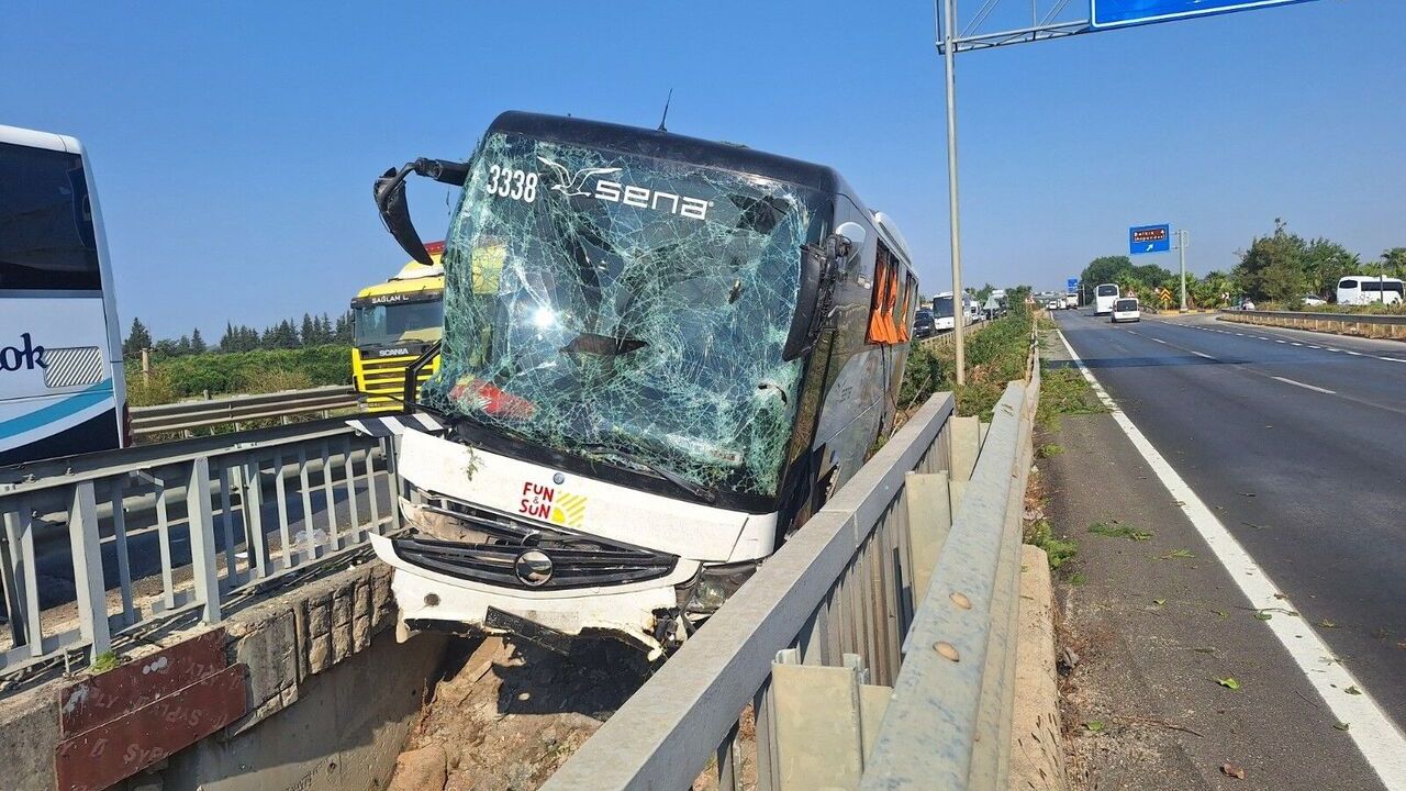 Antalya’nın Serik ilçesinde sabah saatlerinde meydana gelen kazada, içerisinde 34 turistin bulunduğu tur otobüsü facianın eşiğinden döndü. Sürücüsünün kontrolünü kaybettiği otobüs, D-400 kara yolundaki Belkıs Köprüsü girişinde demir bariyerleri aşarak refüje çıktı. Araç köprüden düşmek üzereyken durmayı başardı. Kazada can kaybı ya da yaralanma yaşanmaması ise büyük bir şans olarak değerlendirildi.