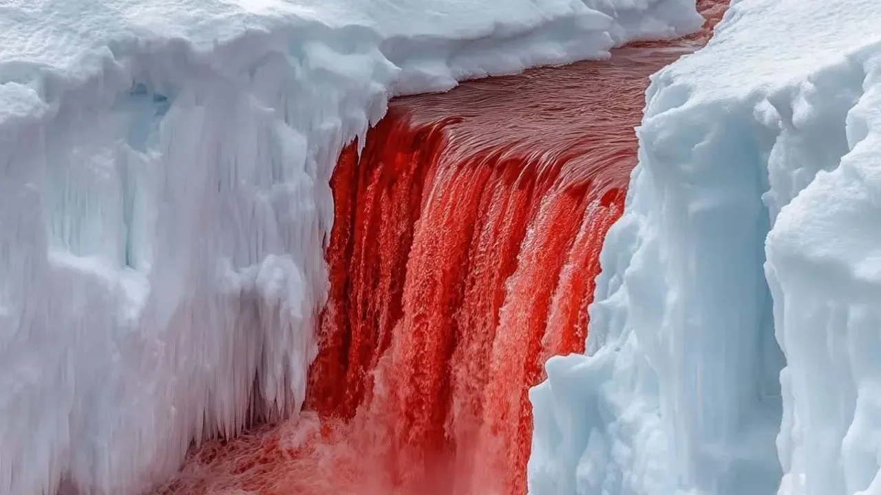 1911’de keşfedilen ve “Kanlı Şelale” olarak adlandırılan bu doğa olayı, derinlerdeki tuzlu ve demir zengini suyun yüzeye çıkıp oksijenle temas etmesi sonucu kırmızı renge bürünmesiyle oluşuyor. Ancak suyun nasıl sıvı kaldığı ve dışarı fışkırdığı bugüne kadar teori olarak kalmıştı.