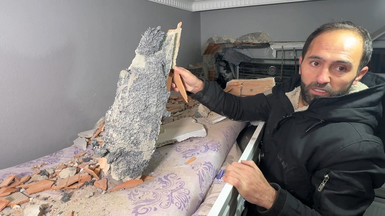 Ev sahibi Emrah Taneri, “Önce gardırop devrildi sandık. Gürültüyle fırlayıp odaya koştuk. Tuğlalar çocuğumun bacağının hemen yanına düşmüştü,” diyerek yaşadıkları korku dolu anları anlattı.