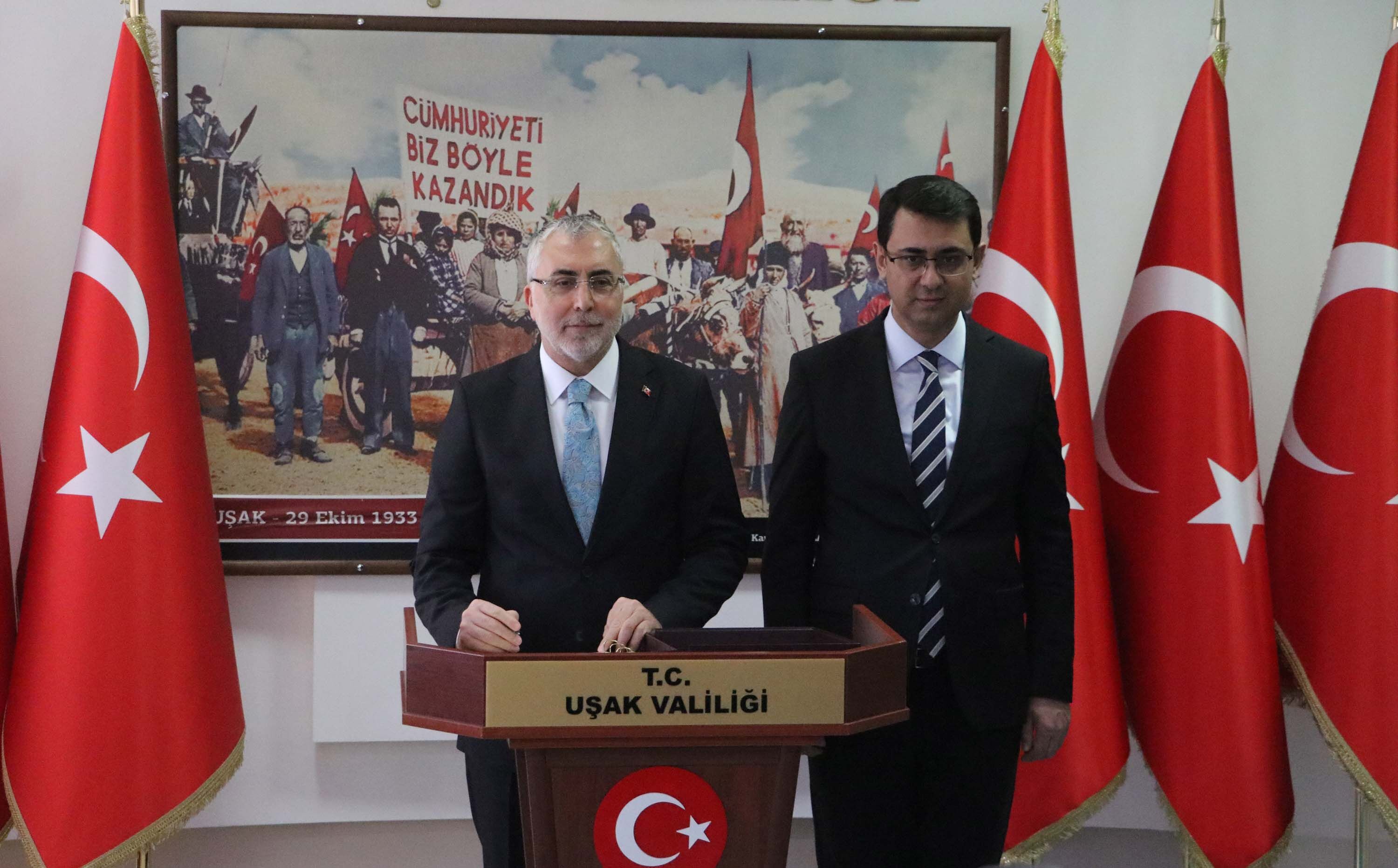 Çalışma ve Sosyal Güvenlik Bakanı Vedat Işıkhan, çeşitli temaslarda bulunmak üzere Uşak’a geldi. Program kapsamında ilk olarak Uşak Valiliği’ni ziyaret eden Işıkhan, burada Uşak Valisi Serdar Kartal ile bir süre görüştü. Ziyarette kentte yürütülen çalışmalar ve projeler hakkında bilgi alışverişinde bulunuldu.