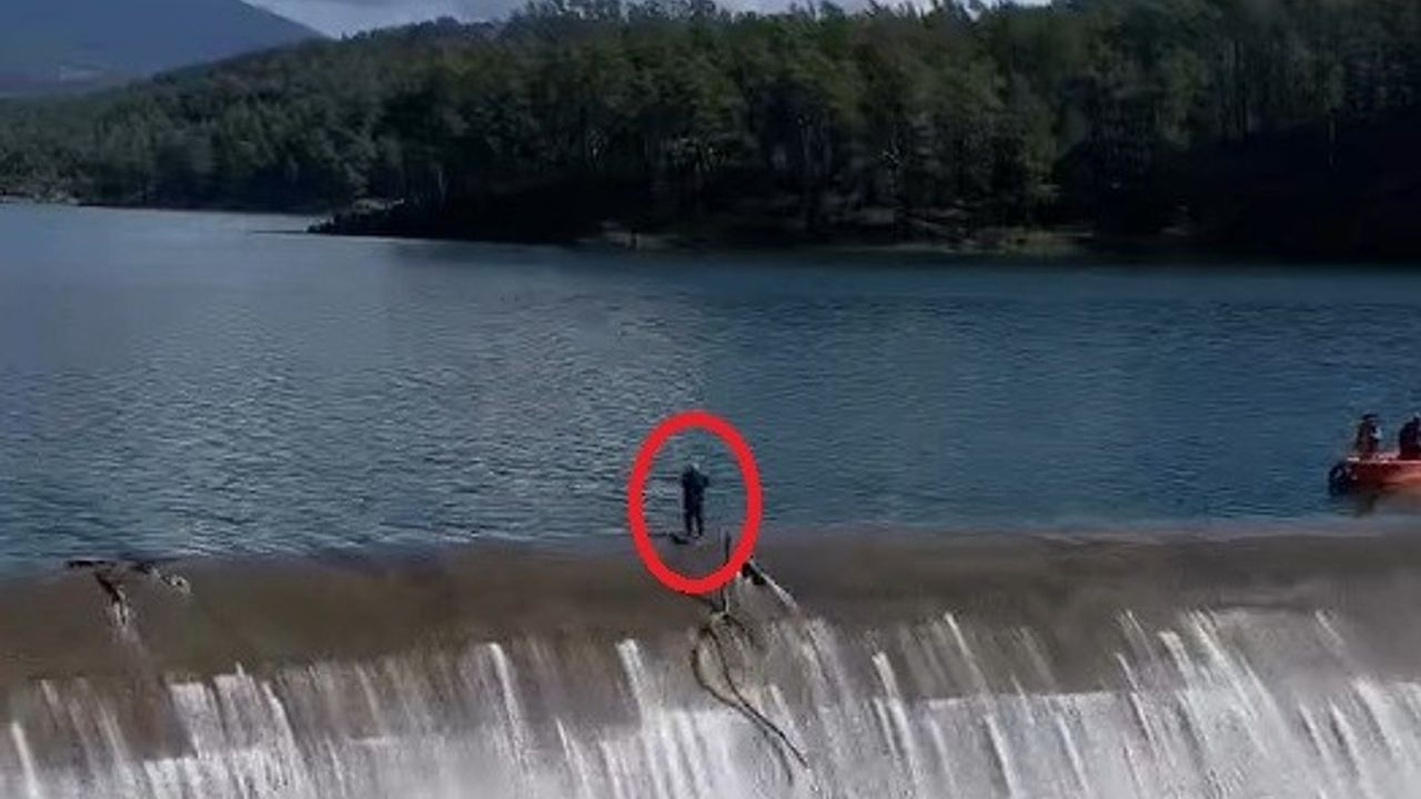 Yurtseven, barajdaki dolu savakta biriken çalı ve ağaçları temizlemek için önce tekneyle bölgeye ulaştı, ardından yürüyerek suyun aktığı alanda çalışmaya devam etti. Vatandaşlar, balık üreticisinin bu cesur müdahalesini cep telefonlarıyla kaydetti.