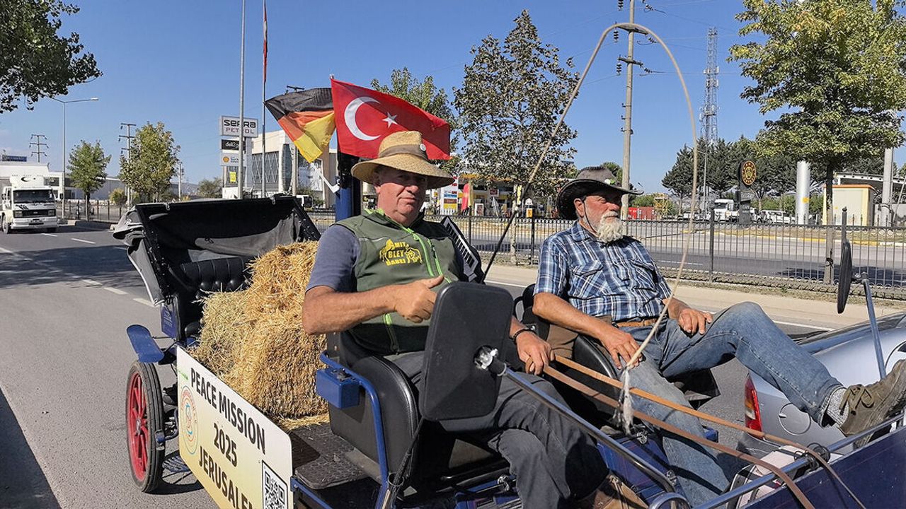 Dünya barışı için yola çıkan iki Alman çiftçi, 2. Dünya Savaşı’nın sona ermesinin 80. yılında Berlin’den Kudüs’e at arabasıyla 4 bin 800 kilometrelik bir barış yolculuğuna çıktı.