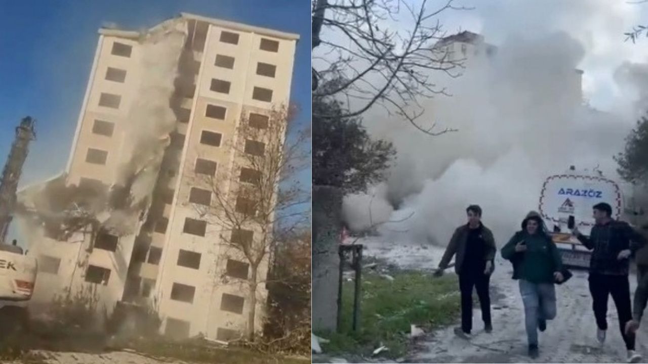 Yıkımı uzaktan izleyen birkaç çocuk, binanın çökme anında yıkıma oldukça yakın bir noktada bulunuyordu. Ancak bina yıkılmadan saniyeler önce fark ederek koşmaya başlayan çocuklar, olası bir facianın eşiğinden döndü.