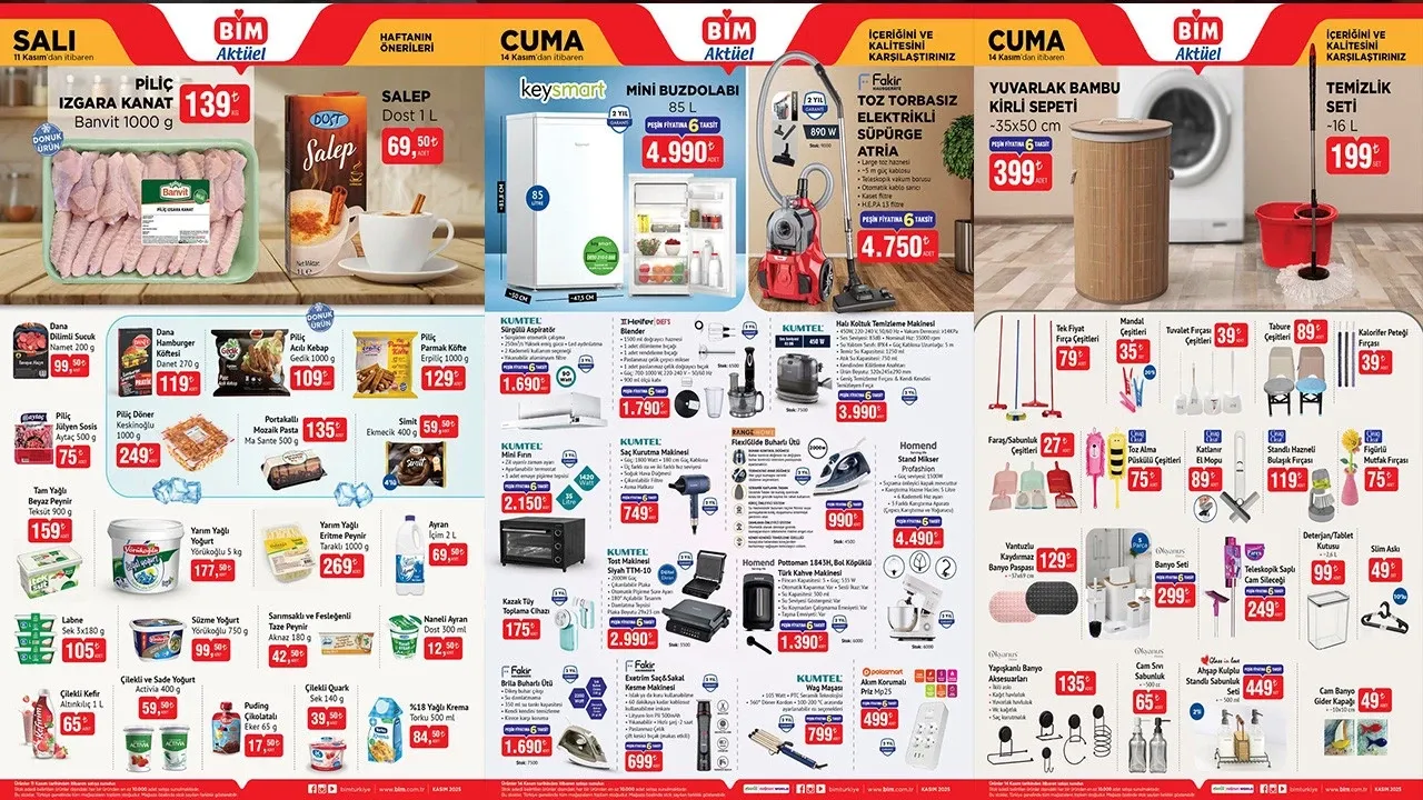 Türkiye genelinde binlerce şubesi bulunan BİM market, 11-14 Kasım tarihleri arasında geçerli olacak yeni aktüel ürün kataloğunu yayımladı. Müşteriler, gıda ürünlerinden küçük ev aletlerine, mutfak gereçlerinden kişisel bakım ürünlerine kadar geniş bir ürün yelpazesiyle karşılaşacak.