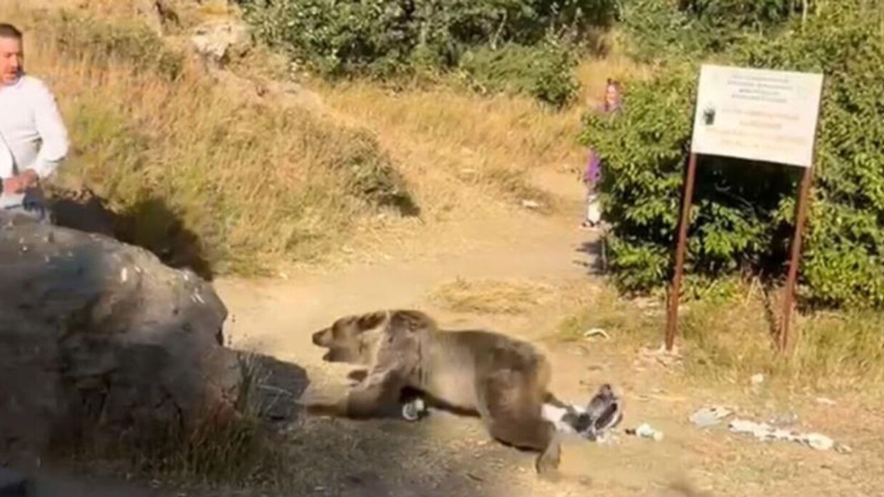 Bitlis'in Tatvan ilçesinde bulunan Nemrut Krater Gölü'nde geziye çıkan bir ailenin üzerine ayı saldırdı. Kucağında bebek bulunan vatandaşa yönelen saldırı anları cep telefonuna yansıdı.