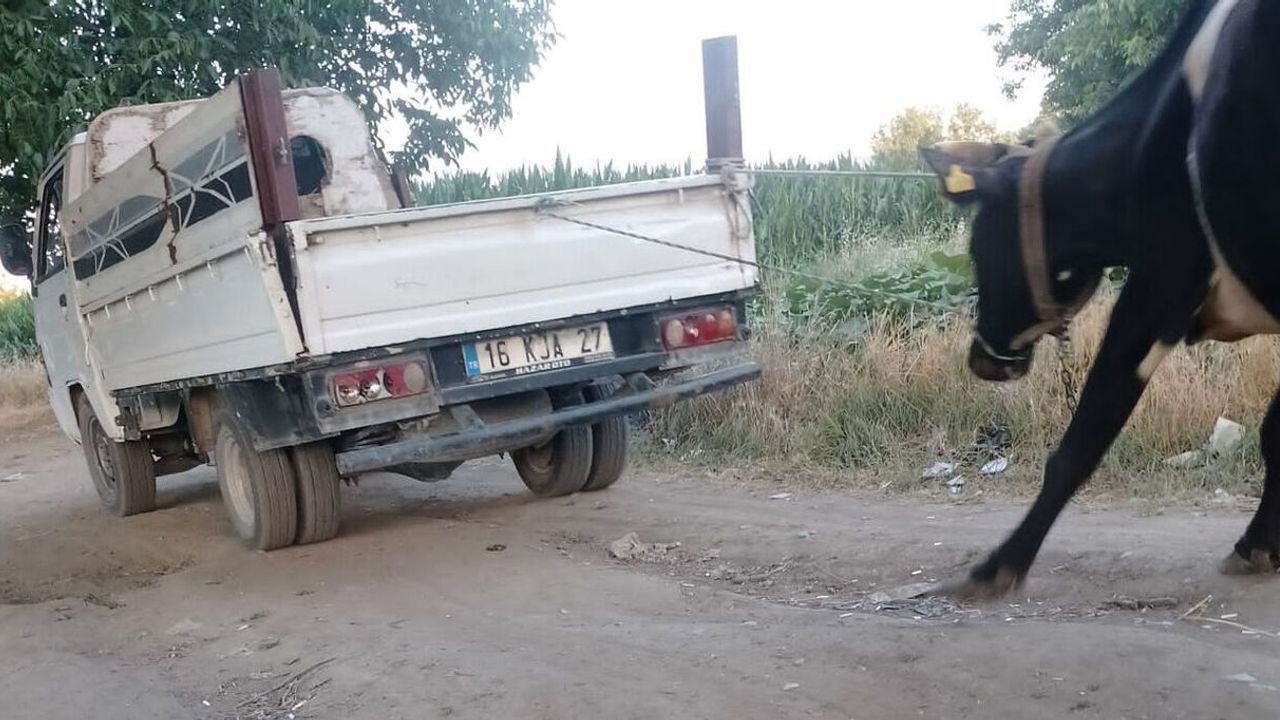 Görüntülerde, kamyonetin arkasına bağlanan büyükbaş hayvanın yürümekte zorlandığı, ardından yere yığıldığı ve sürücü tarafından defalarca sopayla vurularak ayağa kalkmaya zorlandığı görülüyor. Görüntüler sosyal medyada kısa sürede yayılarak büyük tepki topladı.