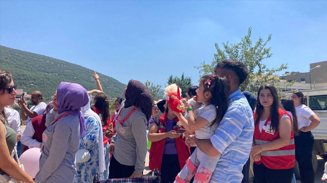 Paylaşım üzerine Bucak Devlet Hastanesi'nde toplanan vatandaşlar, rengarenk balonları gökyüzüne bıraktı.