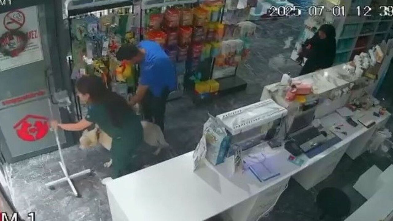 Veteriner kliniğinde çalışanlar sarsıntı sırasında panikle dışarı çıkarken, bir çalışan tedavi gören serum takılı köpeği içeride bırakmayarak sahibi ile birlikte dışarı çıkmasını sağladı.