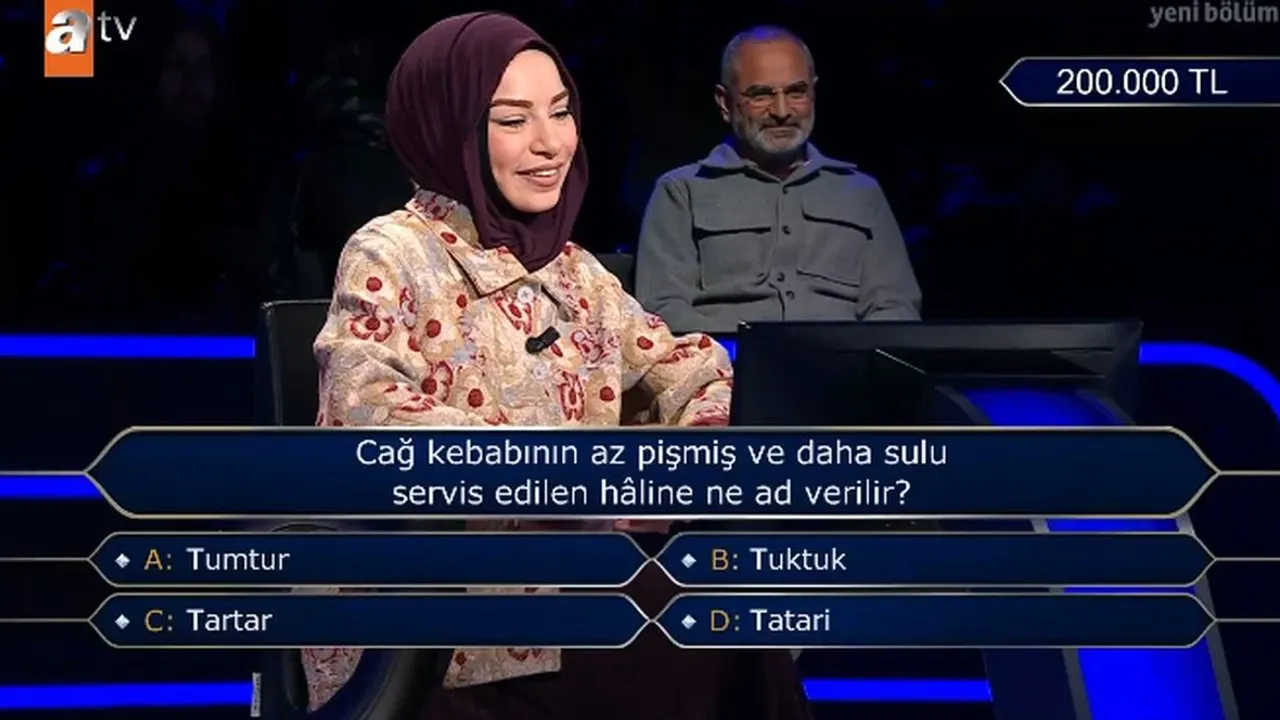ATV ekranlarında yayınlanan bilgi yarışması Kim Milyoner Olmak İster, bu kez gastronomi temalı bir soruyla izleyicilerin ilgisini topladı. Yarışmada yöneltilen “Cağ kebabının az pişmiş ve daha sulu servis edilen hâline ne ad verilir?” sorusu, hem stüdyoda hem de ekran başında merak uyandırdı.
