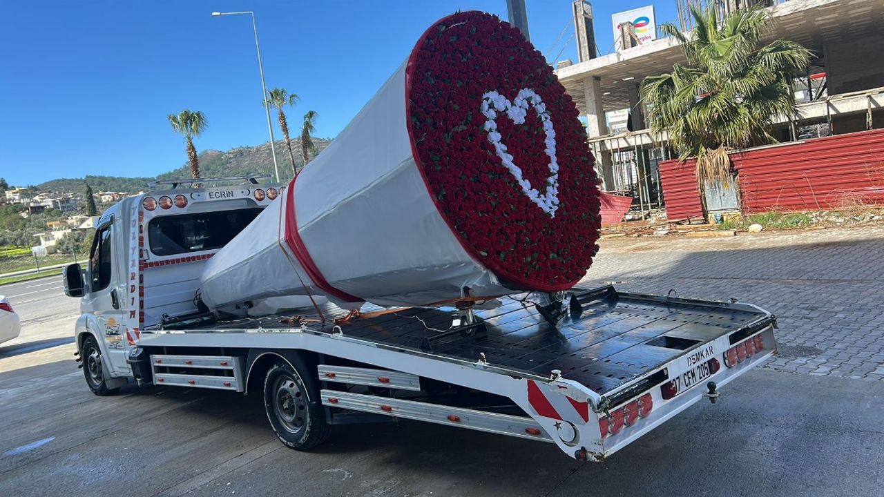Araç platformu büyüklüğünde hazırlanan aranjman, özellikle ilçe merkezindeki ana arterlerde dikkat çekti. Kırmızı güllerle kaplanan yuvarlak tasarımın ortasında yer alan beyaz kalp figürlü dev arajmanı görenler cep telefonlarına sarıldı. Genç çiftler ve aileler dev kalbin önünde hatıra fotoğrafları çektirirken, sosyal medyada paylaşılan görüntüler kısa sürede yayıldı. Çekicinin Gazipaşa caddelerindeki görüntüsü dronla da kayıt altına alındı.