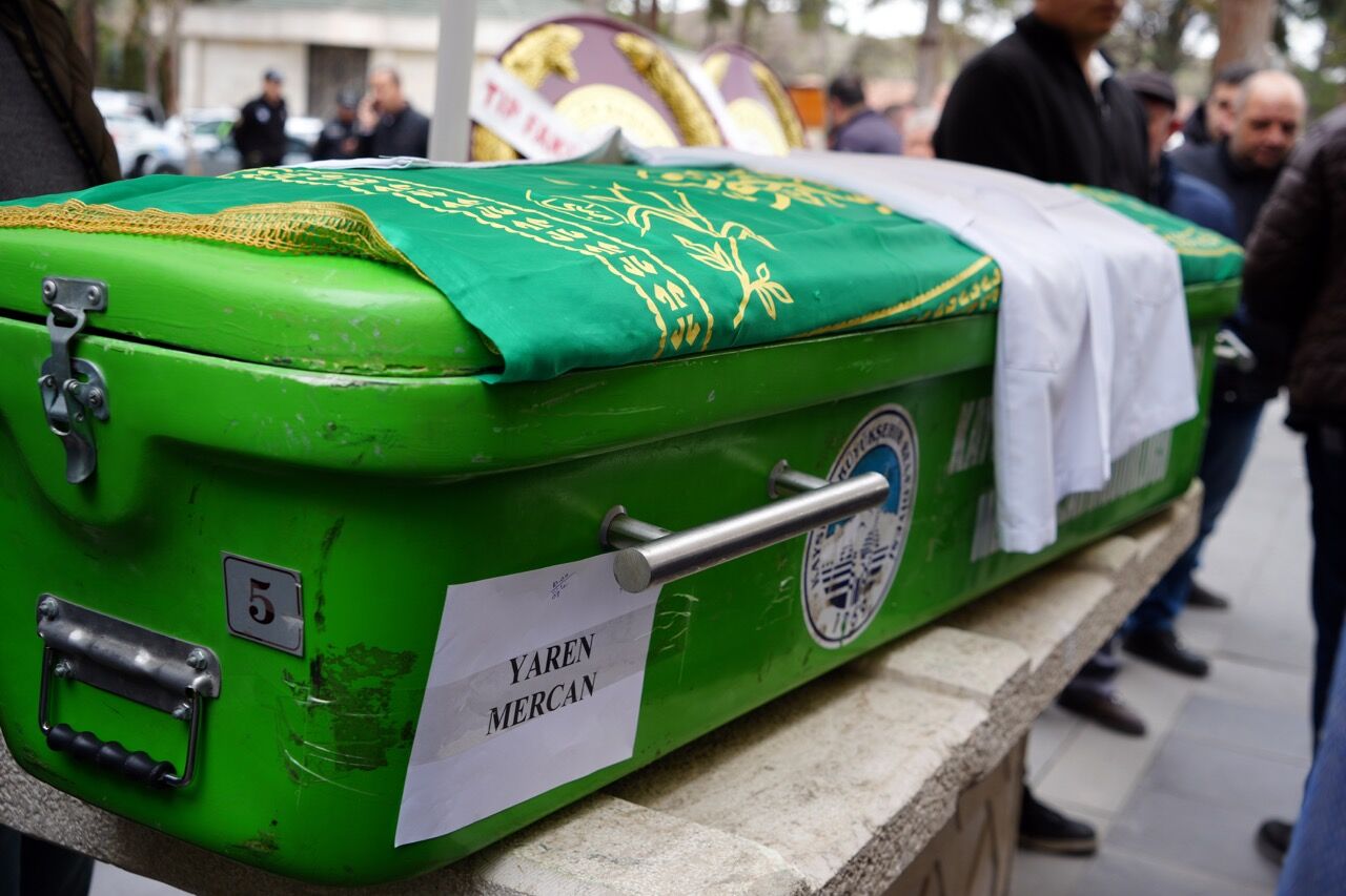 Hayatını kaybeden Yaren Mercan’ın cenazesi, Kayseri Devlet Hastanesi morgunda yapılan otopsi işlemlerinin ardından ailesine teslim edildi. Cenaze töreni için Hulusi Akar Camii’ne getirilen Yaren’in tabutu, görenlerin boğazını düğümledi. Ailesi, kızlarının hayali olan ve giymek için yıllardır emek verdiği beyaz doktor önlüğünü tabutun üzerine serdi.