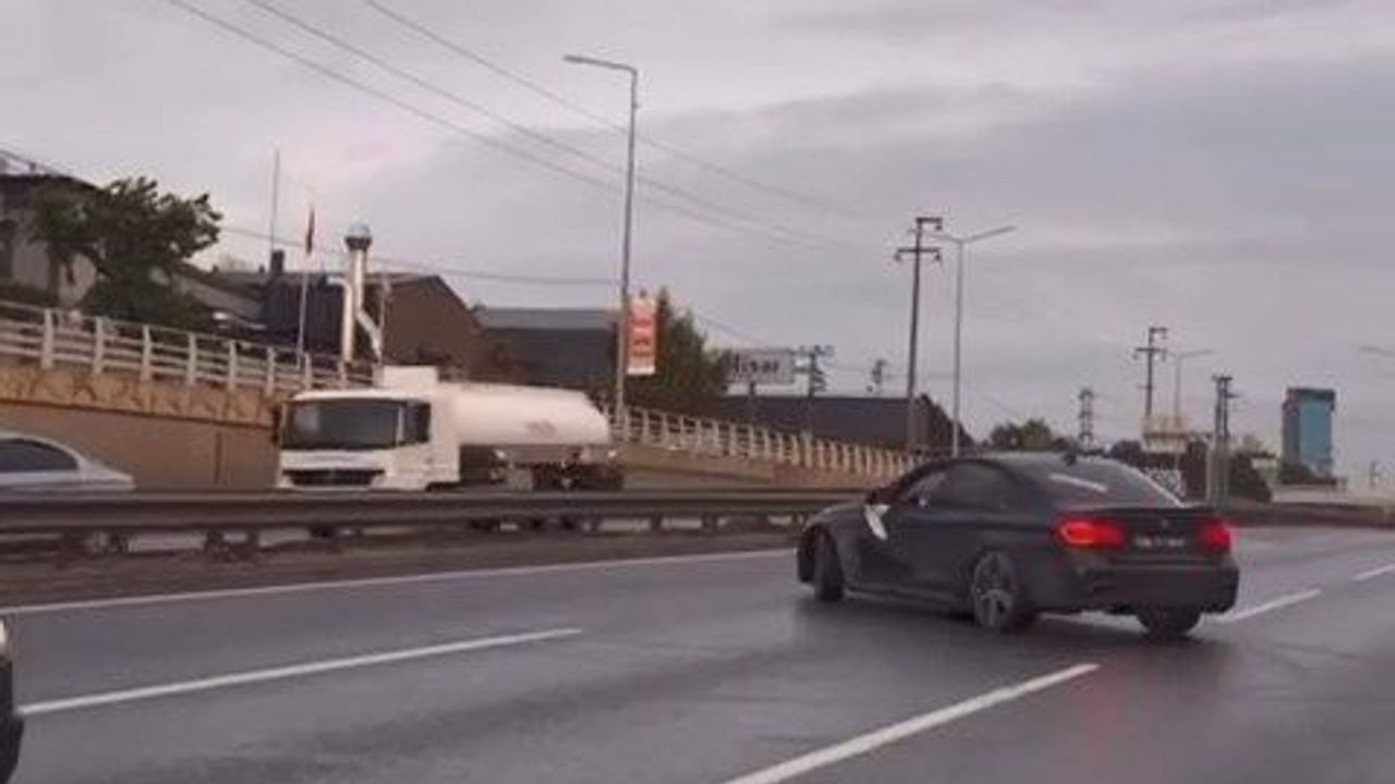 Gebze ilçesi D-100 kara yolu geçişinde düğün konvoyundaki bir otomobilin sürücüsü, aracıyla drift attı. O anlara ilişkin görüntülerin sosyal medya platformlarında paylaşılması üzerine Kocaeli İl Emniyet Müdürlüğü ekipleri çalışma başlattı. Ekipler, sürücü ve otomobili tespit etti. Sürücüye 52 bin 187 TL para cezası uygulanırken, ehliyetine de 60 gün süreyle el konuldu. (DHA)