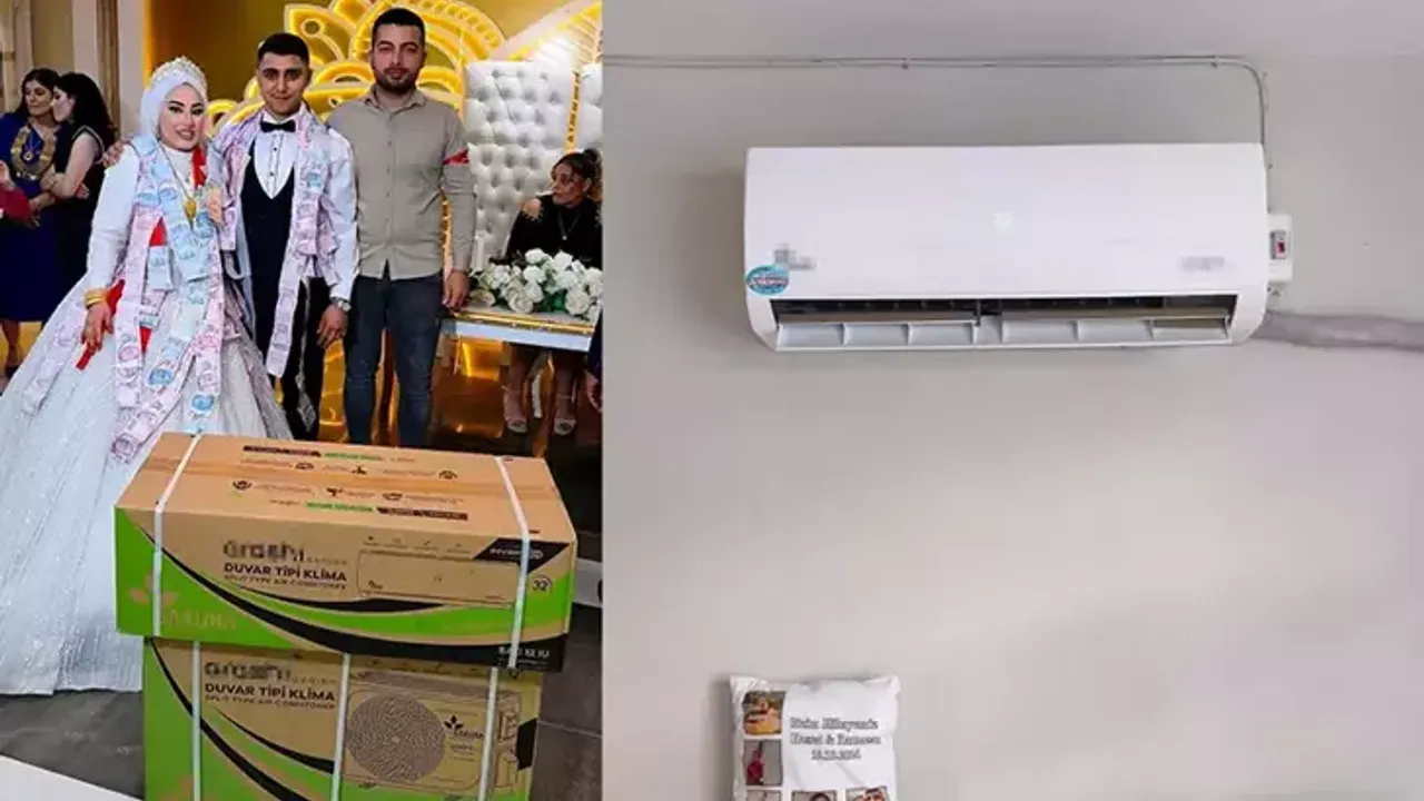 Takı töreni sırasında damadın 10 yıllık yakın arkadaşı ve sağdıcı olan klima ustası Cumali Yıldırım, gelin ve damada ev tipi bir klima hediye etti. Hediye, takı töreni sırasında davetlilerin önünde çifte teslim edilirken, salondakiler şaşkınlığını gizleyemedi.