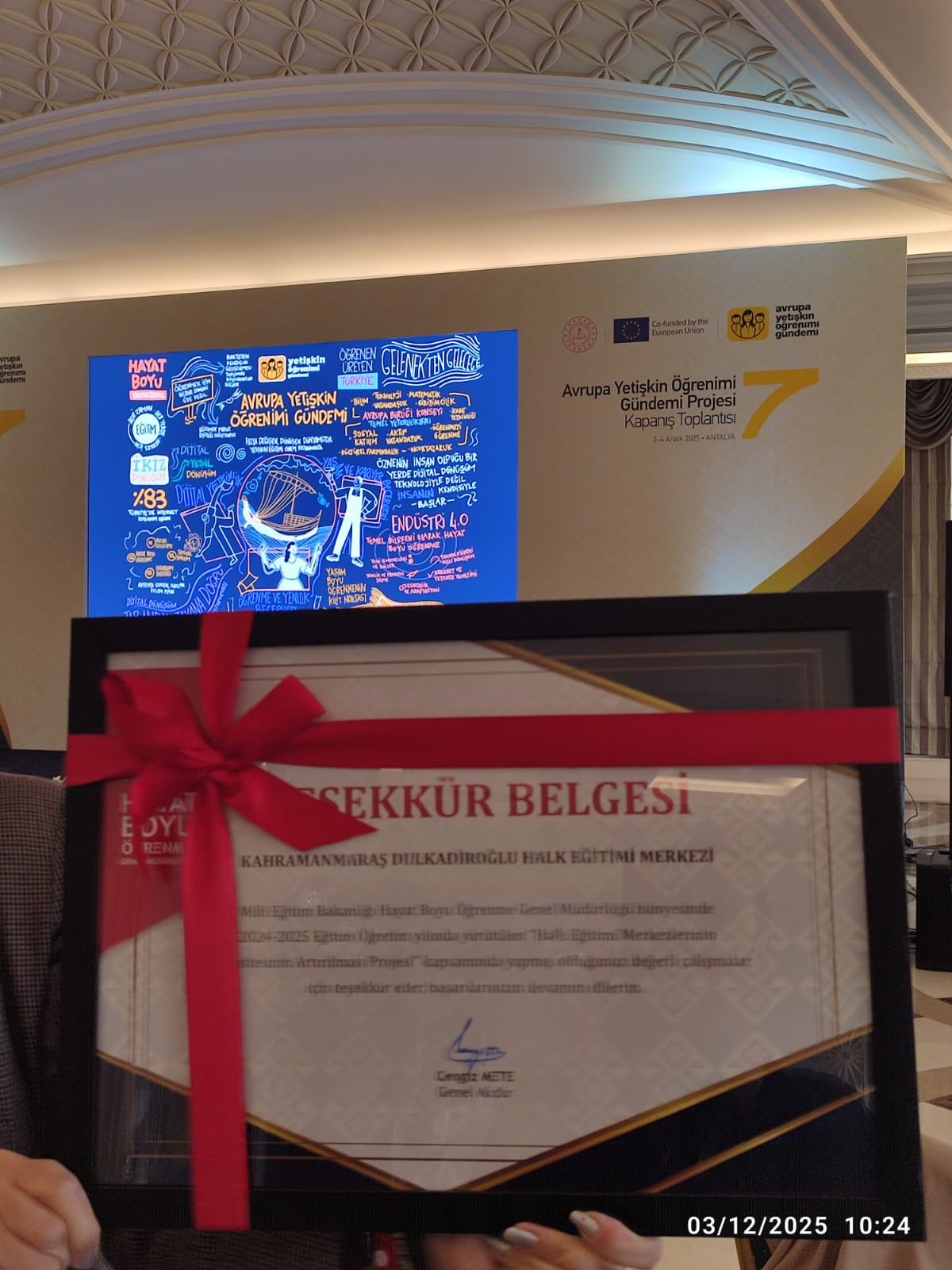 “Gerçekleştirdikleri nitelikli eğitim faaliyetleri, topluma yönelik kapsayıcı hizmet anlayışı ve örnek uygulamalarıyla öne çıkan Dulkadiroğlu Halk Eğitimi Merkezi, ilimizin eğitim alanındaki başarısına değerli katkılar sunmuştur.”