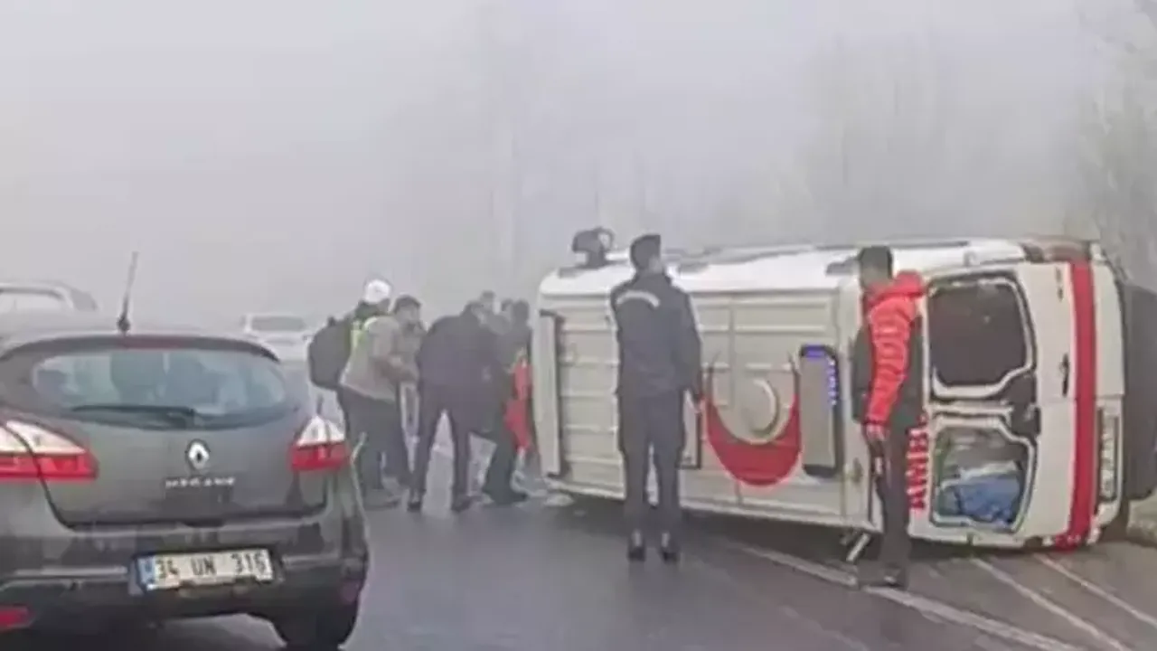 Kaza, sabah saatlerinde kuzey çevre yolunda meydana geldi. C.T. idaresindeki özel bir hastaneye ait 34 JY 7510 plakalı ambulans yoğun sis nedeniyle sürücüsünün direksiyon kontrolünü kaybetmesi sonucu bariyerlere çarparak devrildi.