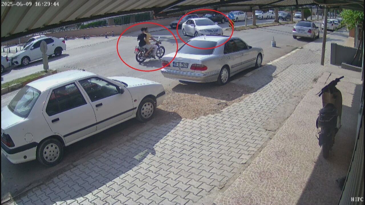 Reyhanlı Yeni Mahallesi’nde yaşanan olayda, yabancı uyruklu kadın sürücünün kullandığı 31 APS 007 plakalı Toyota marka otomobil ‘U dönüşü’ yaptığı sırada karşıdan gelen 31 ANF 167 plakalı motosikletle çarpıştı. Çarpışmanın şiddetiyle motosiklet sürücüsü ve yanındaki yolcu yere savruldu. Kaza anı, çevredeki iş yerinin güvenlik kamerası tarafından net bir şekilde kaydedildi.