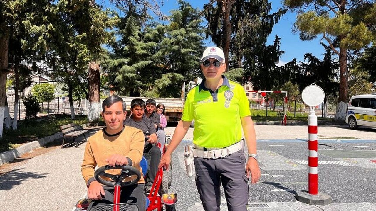 Burdur'da, 10-16 Mayıs Engelliler Haftası kapsamında engelli bireylere yönelik trafik güvenliği eğitimi düzenlendi. Burdur İl Milli Eğitim Müdürlüğü'nün farkındalık yaratmak amacıyla gerçekleştirdiği etkinlikte, Burdur Şehit Hakan Aktürk Özel Eğitim Meslek Okulu'nda öğrenim gören 45 öğrenciye trafik ekiplerince uygulamalı eğitim verildi.