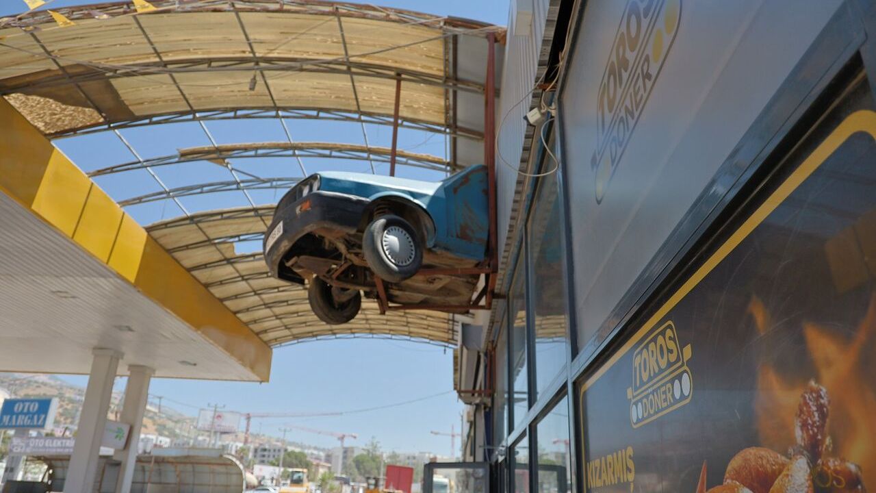 Kahramanmaraş’ta 6 Şubat depremlerinin simgelerinden biri haline gelen bir görüntü, Doğukent Mahallesi’nde ortaya çıktı. Esnaf Osman Loğoğlu, babasından yadigâr kalan ve depremin ardından yarısı enkaz altında kalan otomobilin sağlam kalan kısmını, yeni açtığı dükkânın girişine yerleştirdi. Dönerci dükkânının üstüne asılan araç, görenleri hem duygulandırıyor hem de meraklandırıyor.