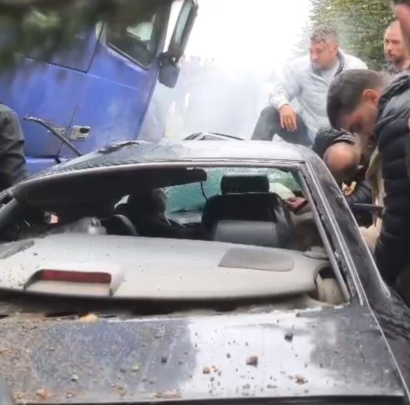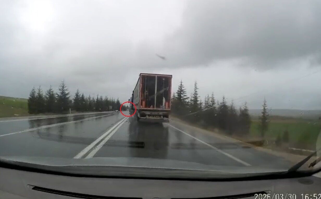 Meydana gelen feci kaza, o sırada aynı istikamette ilerleyen başka bir aracın içi kamerası tarafından kaydedildi. Görüntülerde, yağışlı havada hızla ilerleyen TIR'ın bir anda dengesini kaybederek makas attığı ve karşı şeride geçerek otomobili altına aldığı anlar net bir şekilde görülüyor. Çarpışmanın ardından toz bulutu yükselirken, TIR'ın otomobili nasıl sürükleyip uçuruma yuvarlandığı izleyenlerin kanını dondurdu. Görüntüler, kazanın şiddetini ve kaygan zeminin oluşturduğu tehlikeyi bir kez daha gözler önüne serdi.