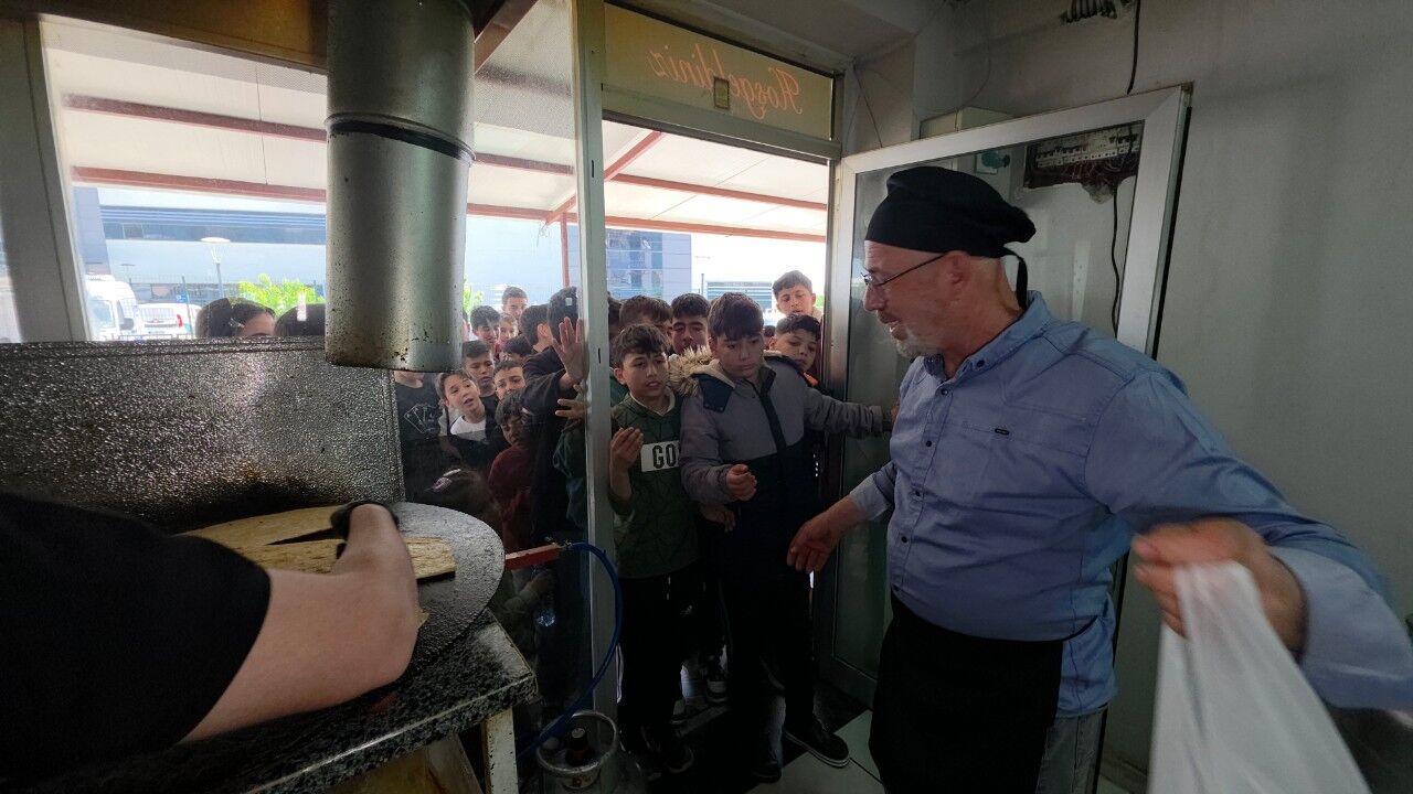 23 Nisan Ulusal Egemenlik ve Çocuk Bayramı, tüm Türkiye’de olduğu gibi Hatay’da da anlamlı etkinliklerle kutlanırken, Hassa ilçesinde bir esnafın başlattığı kampanya gönülleri fethetti. İlçede iki farklı şubesi bulunan dönerci işletmecisi Mustafa Tufan, deprem felaketinin izlerini silmeye çalışan ve son dönemde bölgede yaşanan bazı olumsuz olaylardan etkilenen çocuklara moral aşılamak için harekete geçti. Birkaç gün öncesinden duyurusu yapılan etkinlikte, bayram törenlerinden çıkan yüzlerce öğrenci döner dükkanlarına akın etti. Bayramın coşkusunu lezzetli bir ikramla taçlandıran çocukların mutluluğu kameralara yansırken, dükkan önlerinde uzun kuyruklar oluştu.