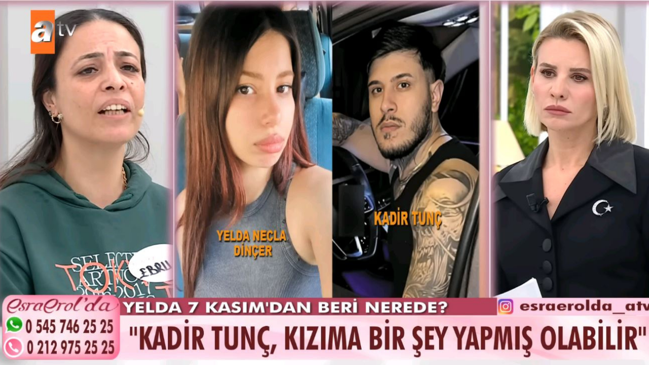 ATV ekranlarının sevilen programı Esra Erol’da, kaybolan 20 yaşındaki Yelda Necla Dinçer’in bulunmasıyla izleyicilerin gündemine oturdu. İzmir’de yaşayan genç kız, 7 Kasım’dan itibaren kayıptı ve ailesi günlerce kendisinden haber alamadı. Annesi ve teyzesi, stüdyoya gelerek Yelda’ya ulaşmak için destek istemişti.