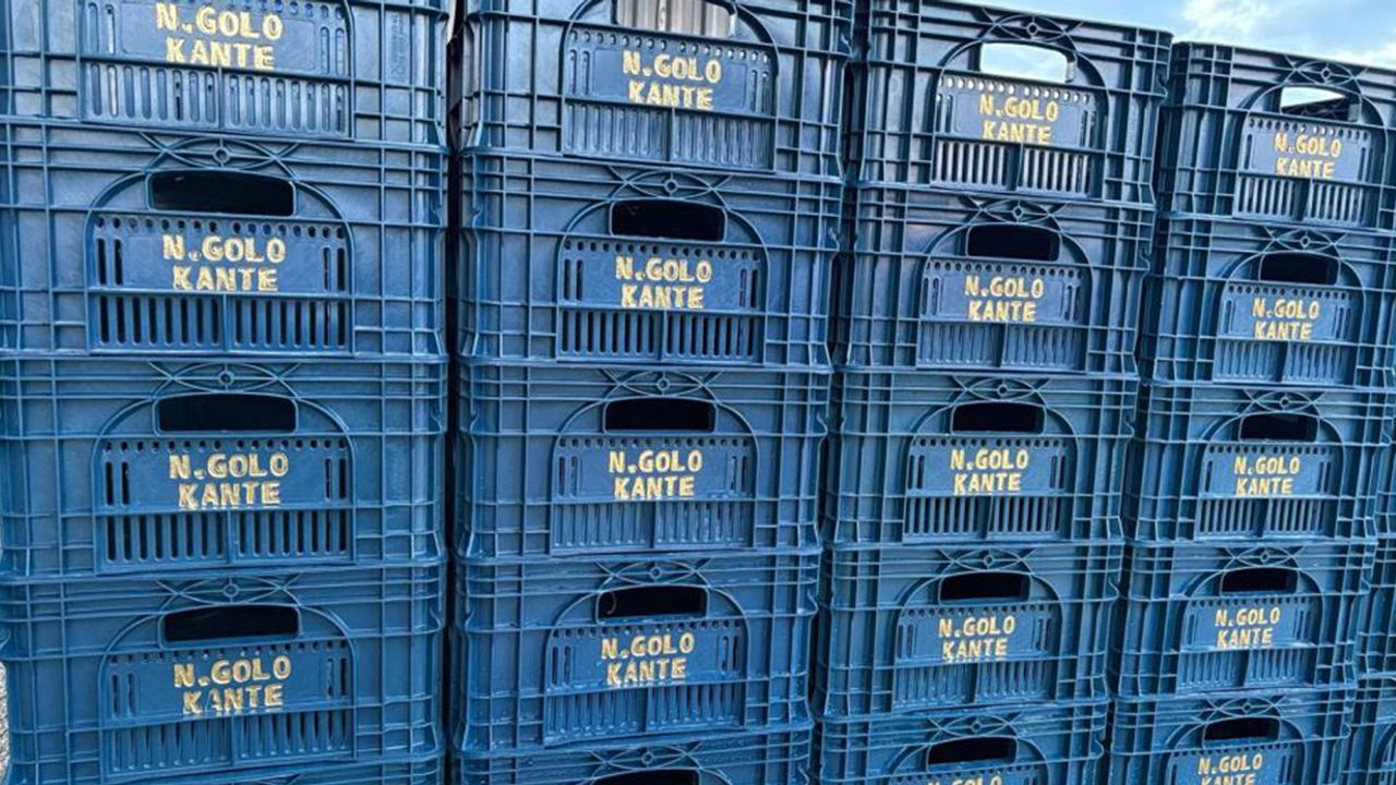 100 plastik kasaya ‘N'Golo Kante' yazdıran Çetin, yine yıldız oyuncu için seslendirilen müzik eşliğinde domatesleri toplayarak kasalara koyuyor.