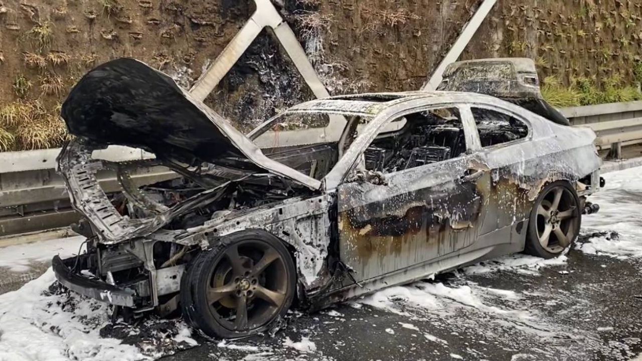 Durumu fark eden araç sürücüsü, aracını sağ şeride çekti. Sürücü yükselen alevlere müdahale etmeye çalışırken, yangın kısa sürede tüm aracı sardı. İhbar üzerine olay yerine itfaiye ekipleri sevk edildi.