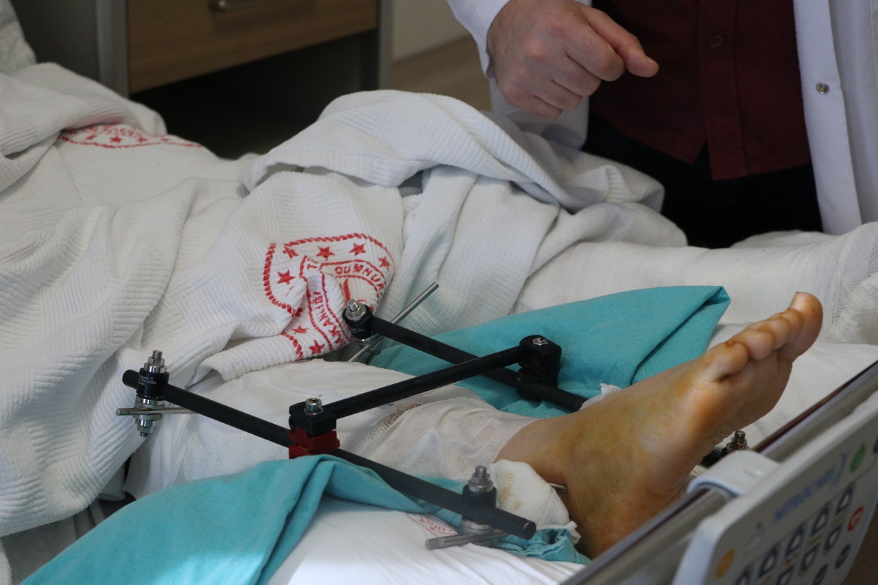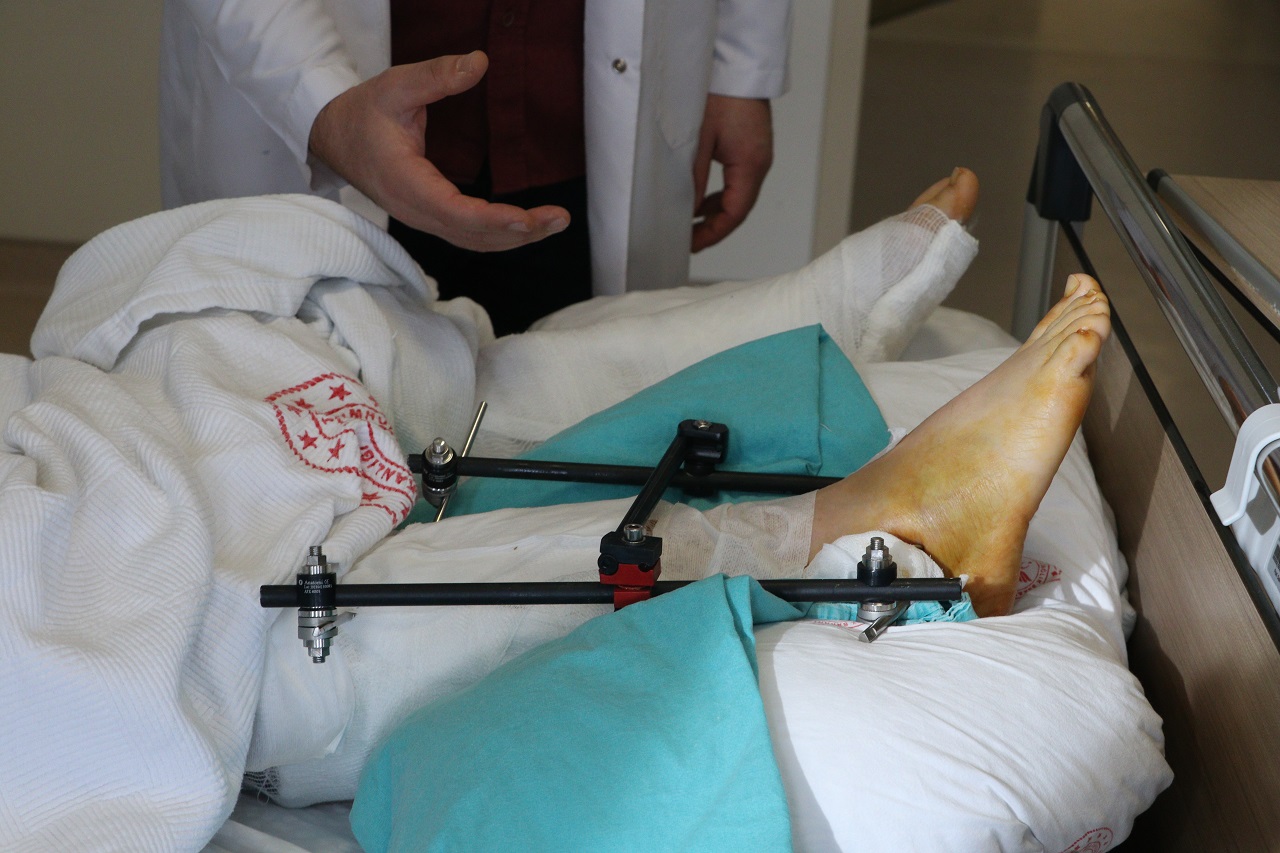 “Hastamız ciddi bir crush (ezilme) yaralanmasıyla geldi. Sağ bacakta doku kaybı ve çok parçalı kırıklar vardı. Sol ayakta da ciddi ezilme mevcuttu. Hızlıca müdahale edip temizlik ve kırık tespiti yaptık. Bu tür vakalarda acil müdahale çok önemlidir. Gecikilseydi bir veya iki bacağın kaybı gündeme gelebilirdi. Şimdi hastamızın iyileşme süreci başladı. Ortalama üç ay sonra yürüme desteği sağlanabilecek.”