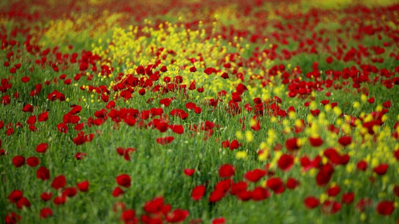 Kış uykusundan uyanan toprak, gelinciklerin açmasıyla birlikte adeta bir sanat eserine dönüştü.