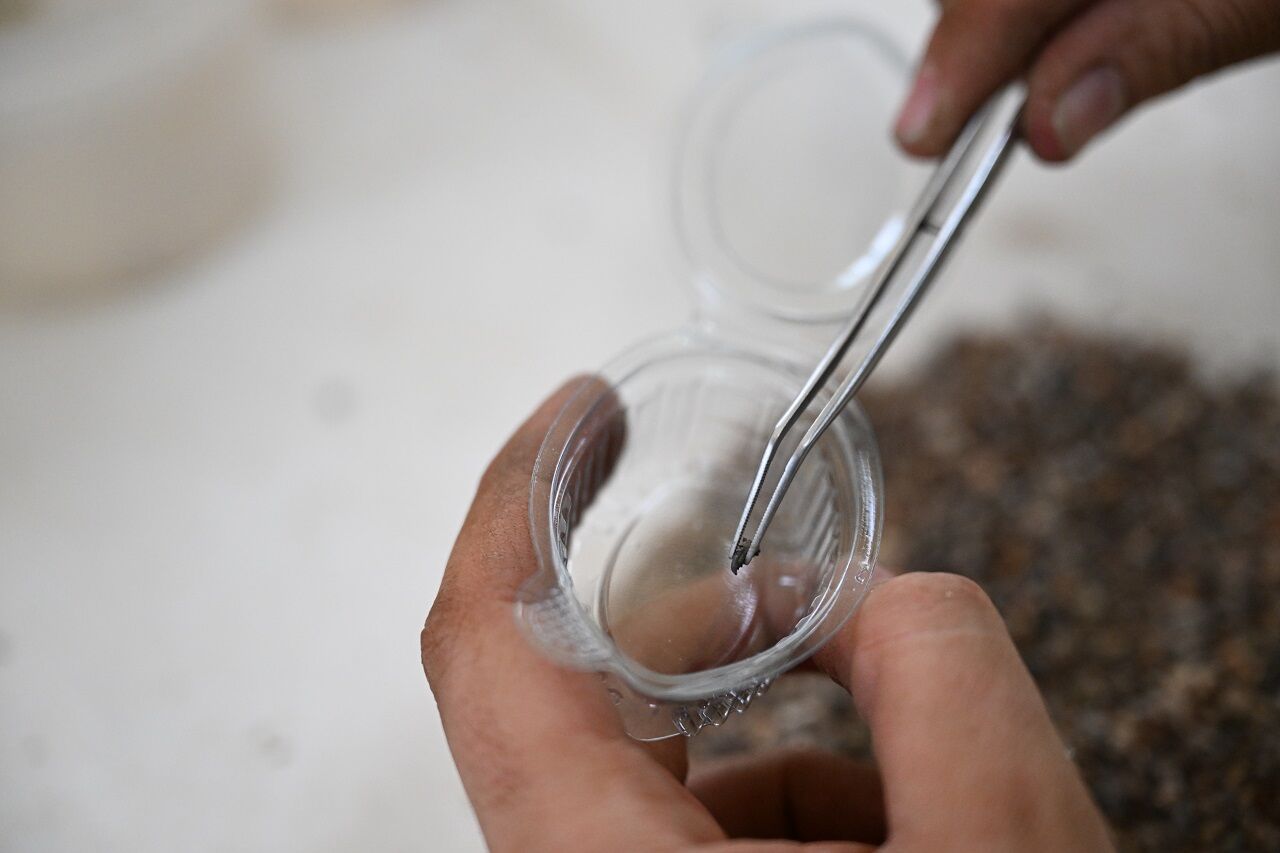 Boncukların işlenme sürecini ve kullanılan malzemeleri gösteren detay görüntüler.