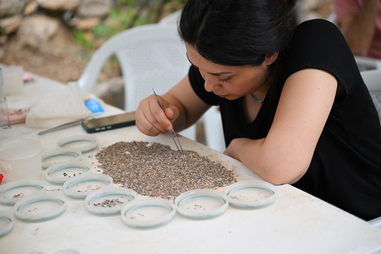 Arkeologlar, boncukların bulunduğu katmanda titiz çalışmalara devam ediyor.