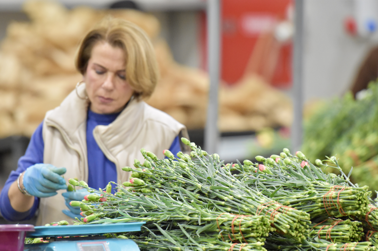 Sabahın erken saatlerinde seralarda toplanan çiçekler, kalite kontrolünün ardından ihracata hazır hale getiriliyor.