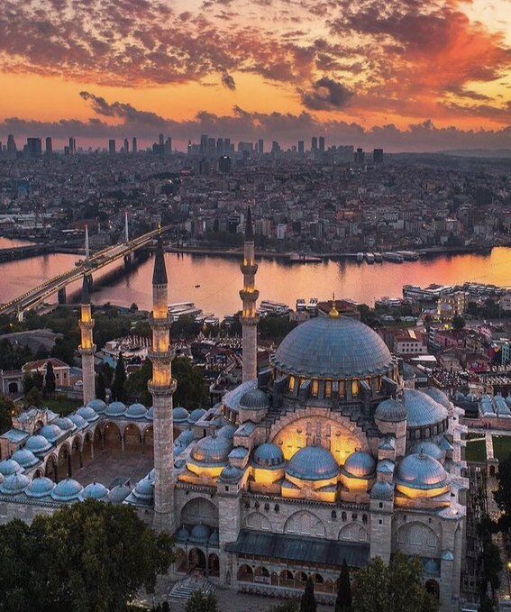Indiana'daki gün batımında yaklaşık 50 mil öteden görülebilen Chicago silüeti